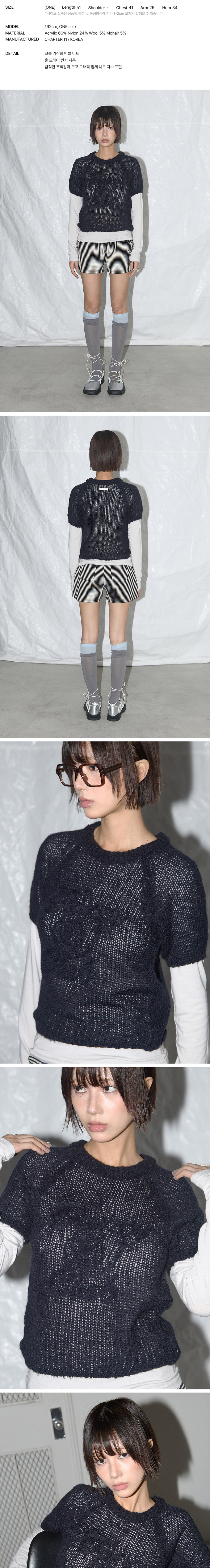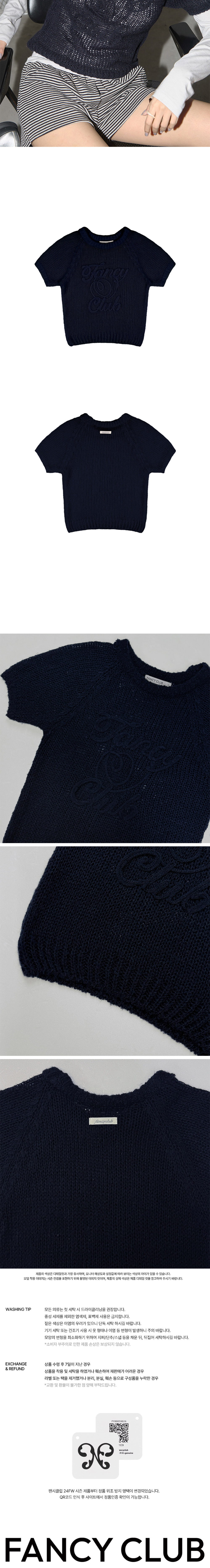 팬시클럽 엠브로이드 네트 레글런 니트 네이비