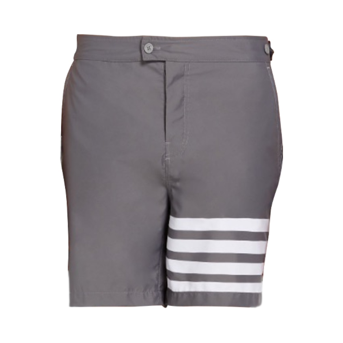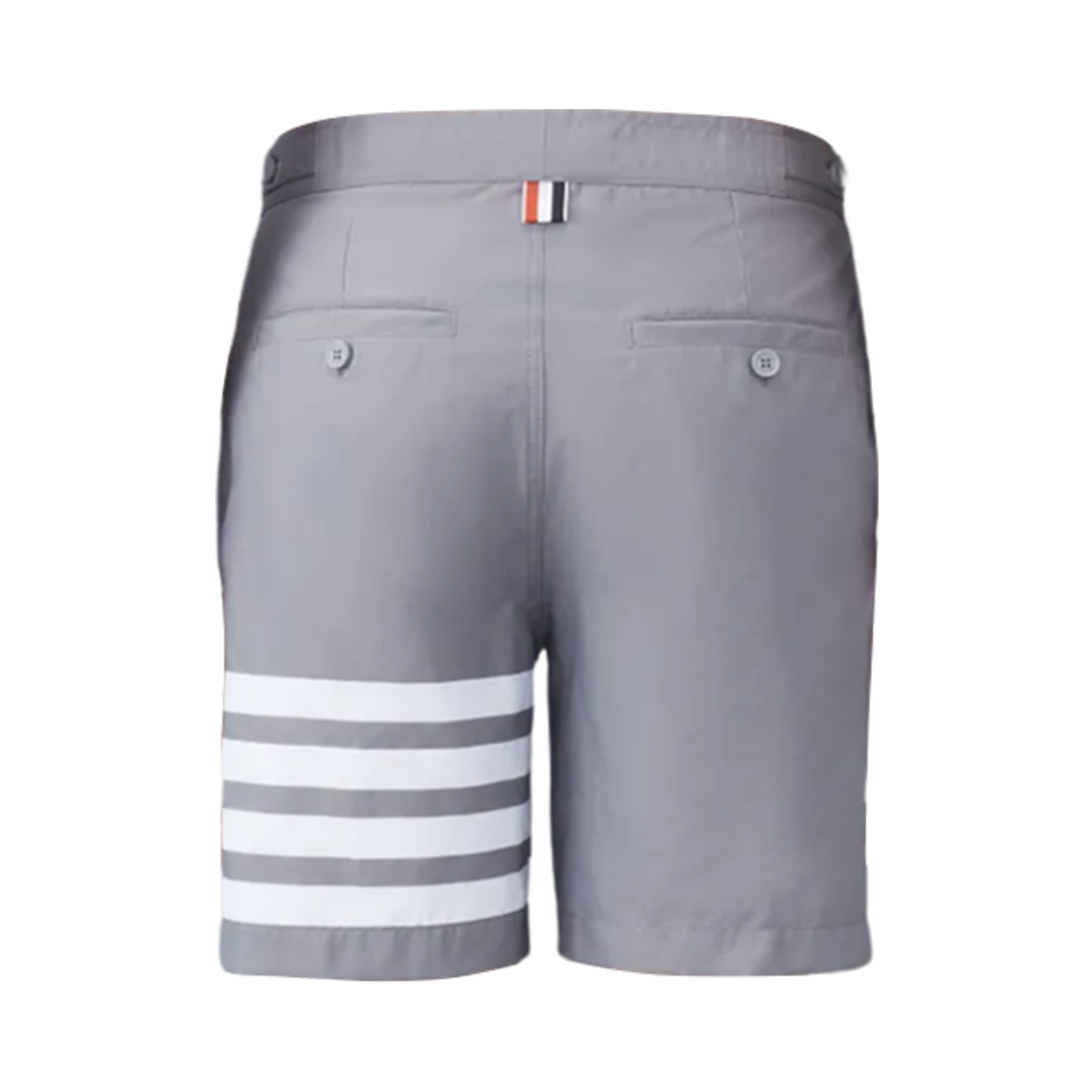 Thom Browne Swim Tech 4-Bar Adjustable Elastic Back Button Front Board Short Medium Grey