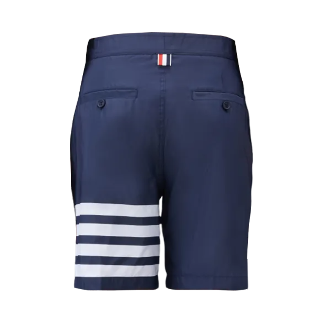 Thom Browne Swim Tech 4-Bar Adjustable Elastic Back Button Front Board Short Navy