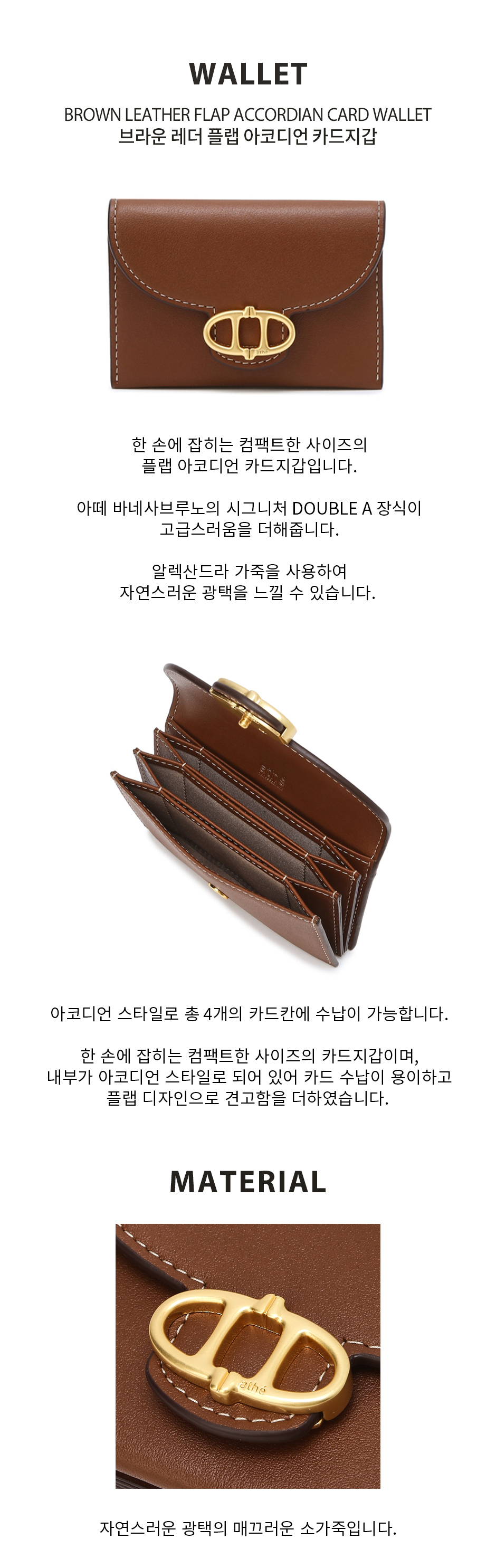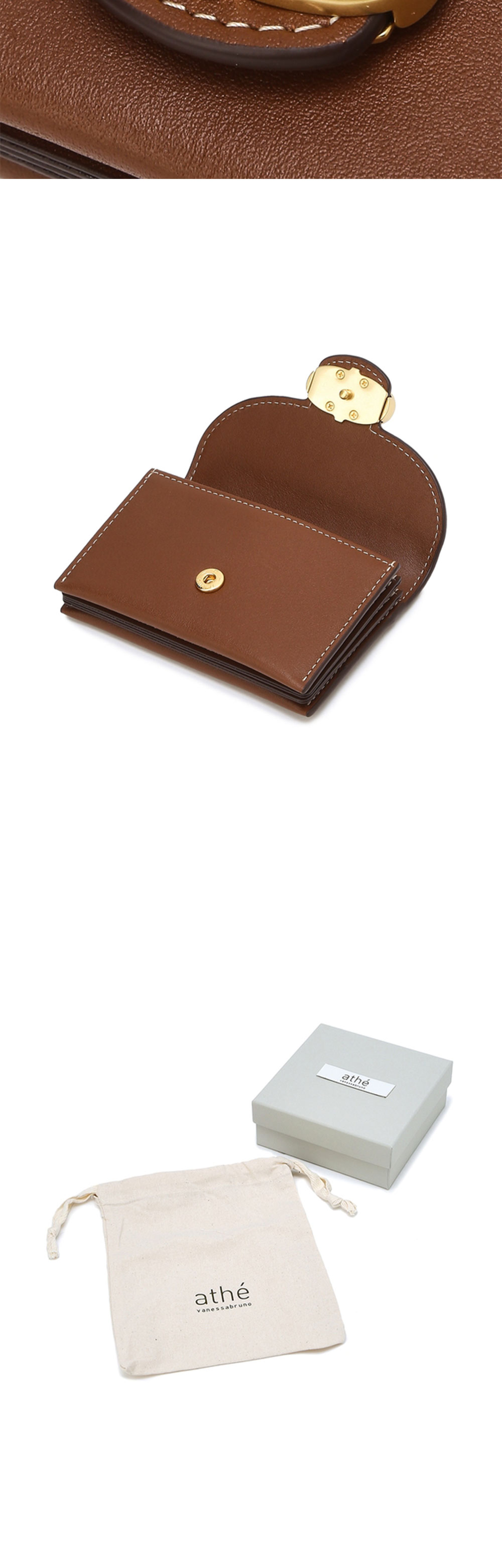 아떼바네사브루노 레더 플랩 아코디언 카드지갑 브라운