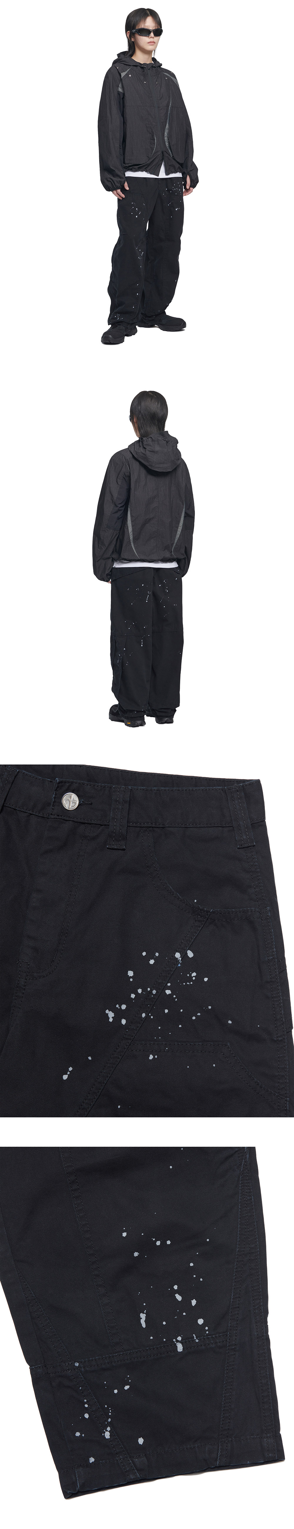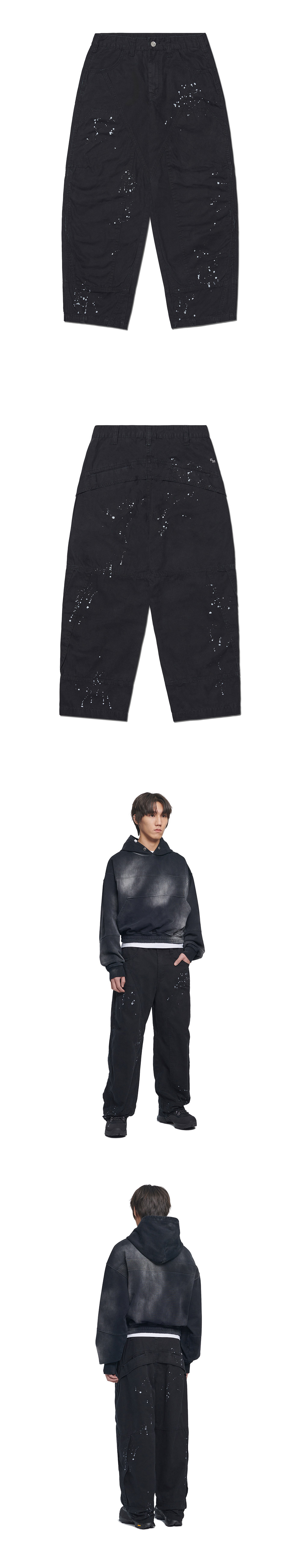 노매뉴얼 페인티드 더블 니 팬츠 워시드 블랙