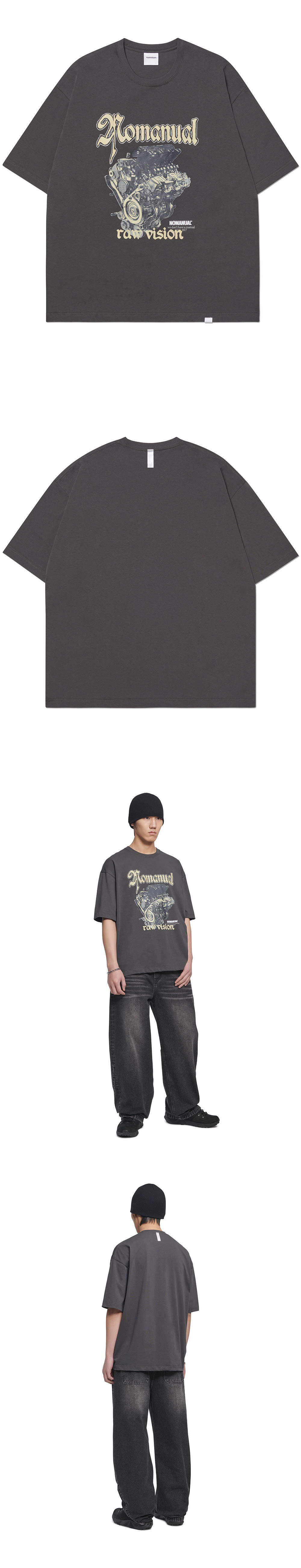 노매뉴얼 NM 엔진 티셔츠 차콜