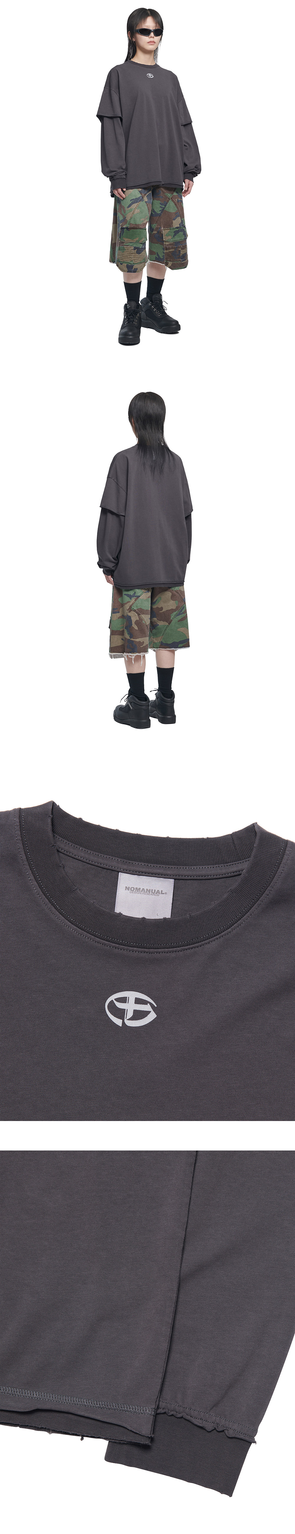 NOMANUAL Abrasion Layered Long Sleeve Tee Washed Charcoal