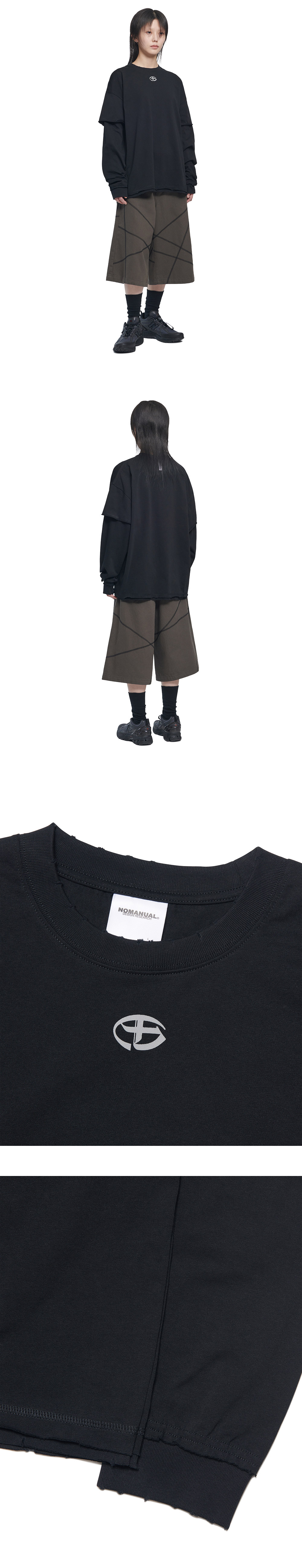 NOMANUAL Abrasion Layered Long Sleeve Tee Black