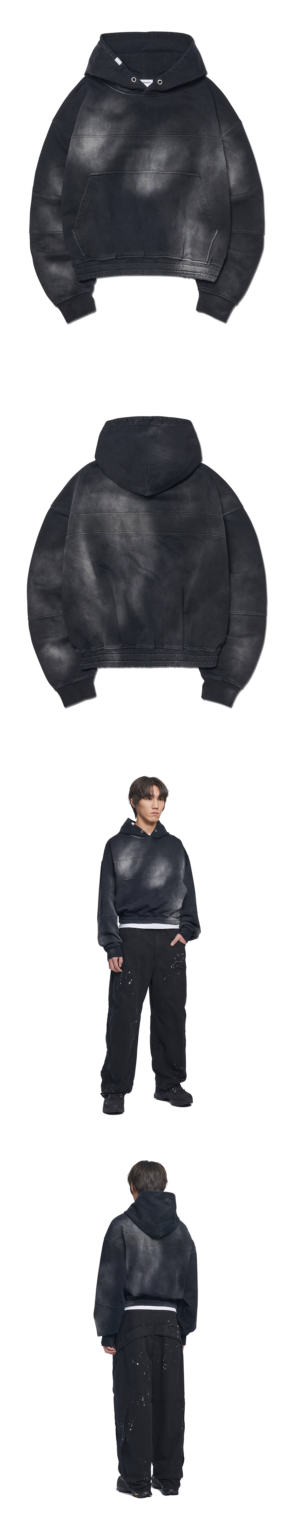 노매뉴얼 스테인 워시드 후디 워시드 블랙