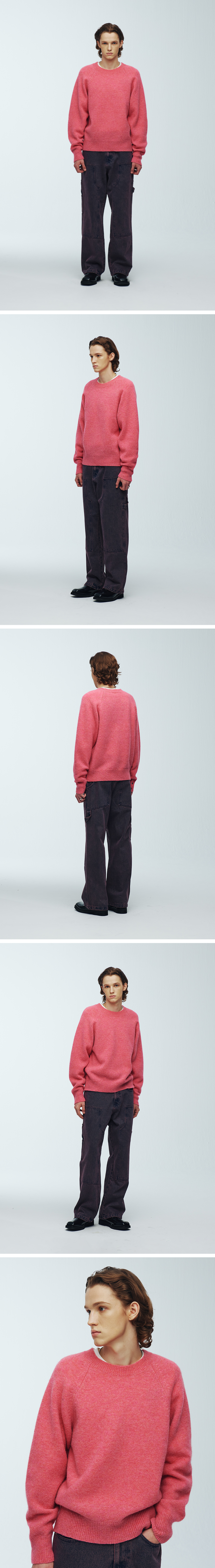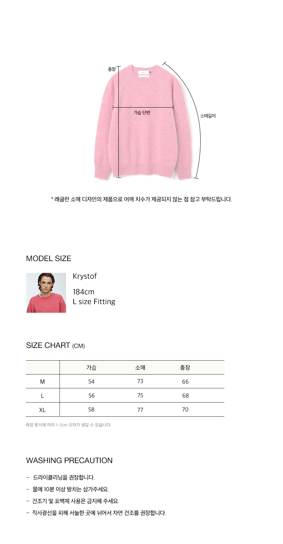 니티드 쉐기독 울 100% 라운드 니트 진저 핑크