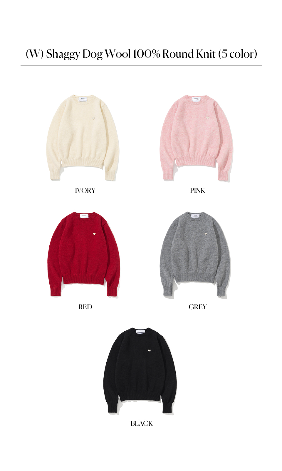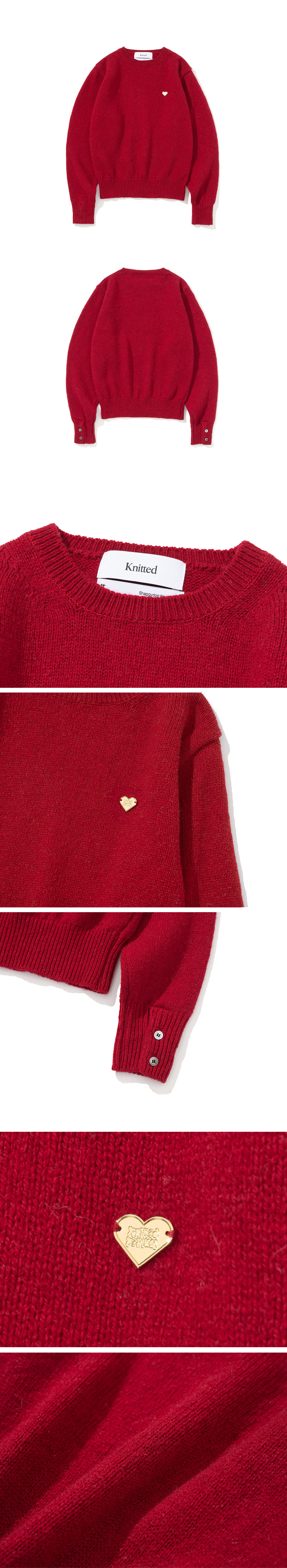 니티드 쉐기독 울 100% 라운드 니트 우먼 레드