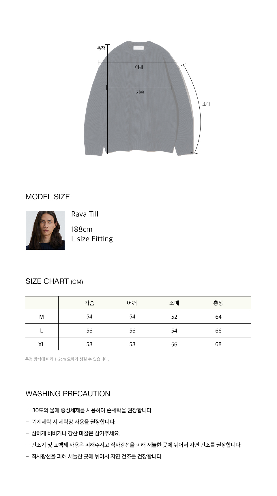 고급 소프트 코튼 원단으로 맨살에 입어도 부드러운 촉감을 느낄 수 있으며 기계세탁하여도 변형되지 않는 내구성을 가지고 있는 제품입니다. 노컷팅 자동 패턴으로 제작되어 자연스러운 드랍 숄더로 착용 시 흐르듯이 떨어지는 실루엣을 연출해줍니다. 톤 다운된 차분한 컬러로 구성되어 부담 없이 착용 가능하며 데님 팬츠, 슬랙스 등 다양한 팬츠와 매치하기 좋아 활용도 높은 니트웨어입니다.