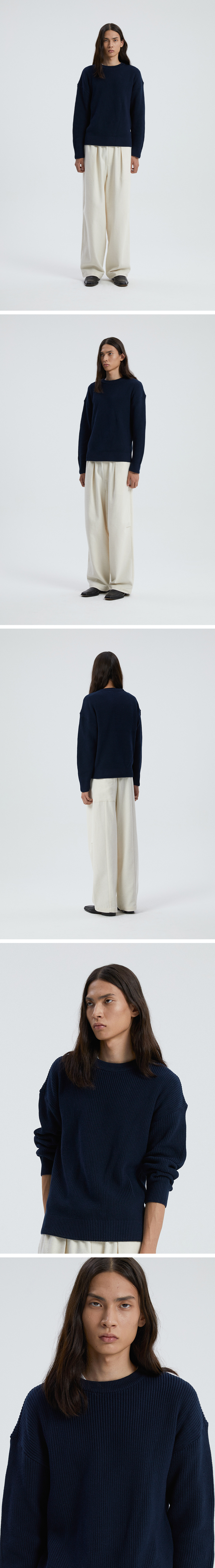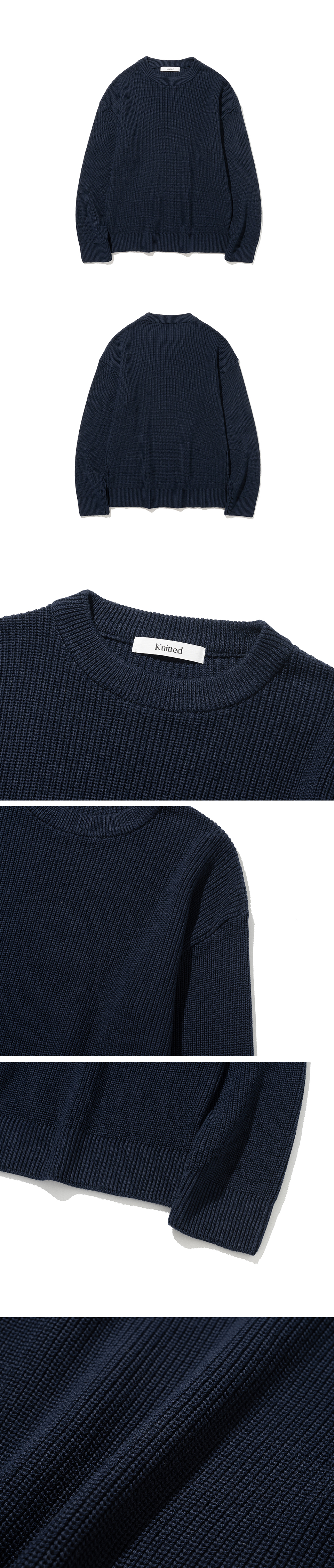 니티드 소프트코튼 드랍숄더 와플 니트 네이비