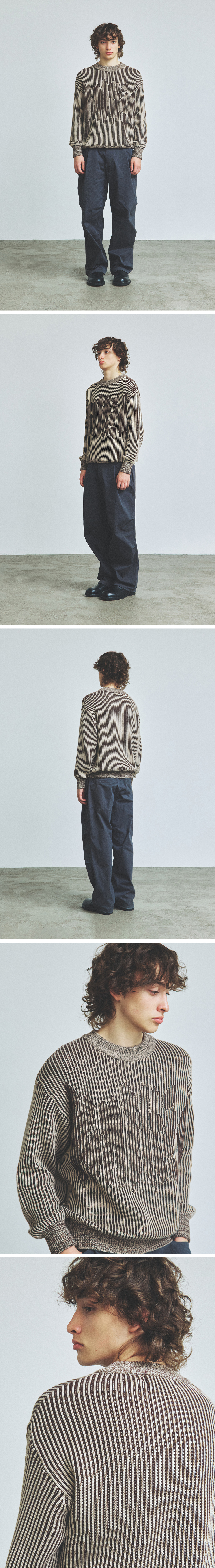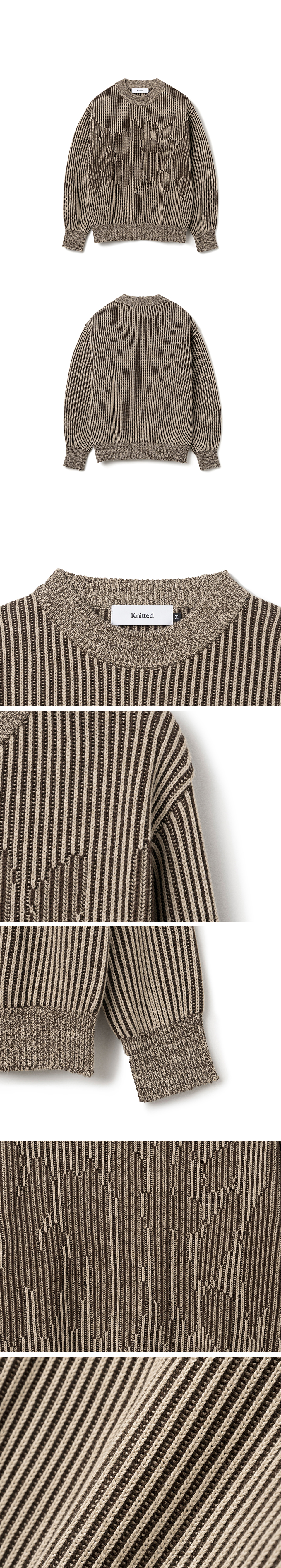 니티드 투톤 골지 로고 니트 브라운