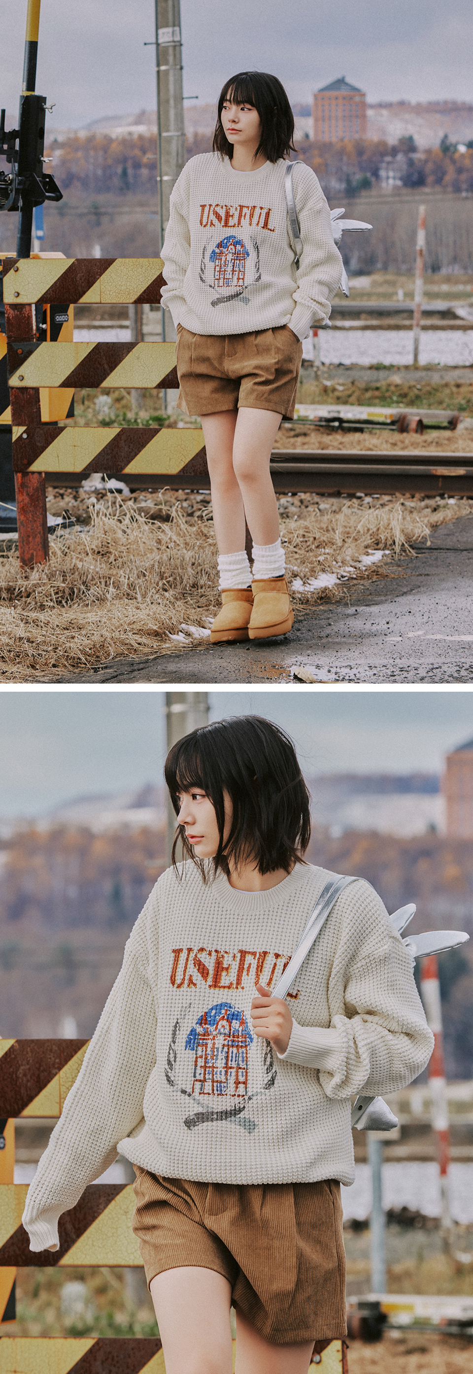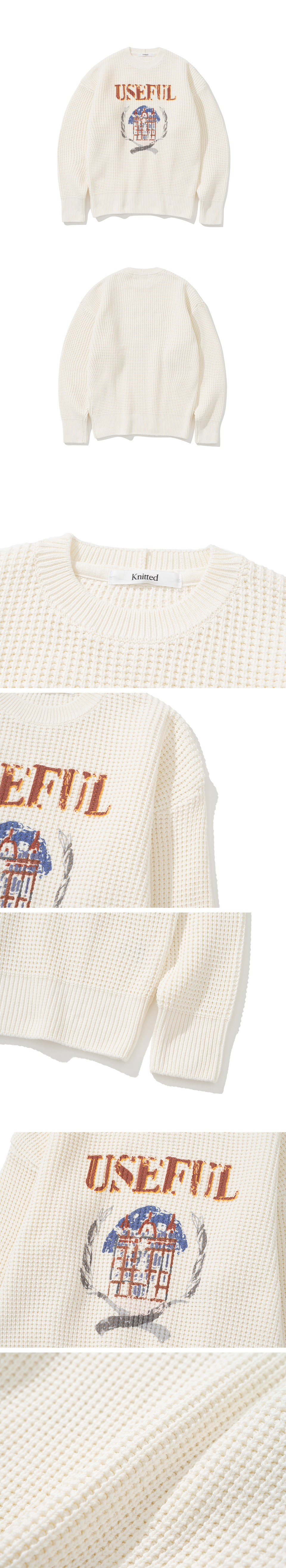 니티드 코튼 유즈풀 캐슬 라운드 니트 아이보리