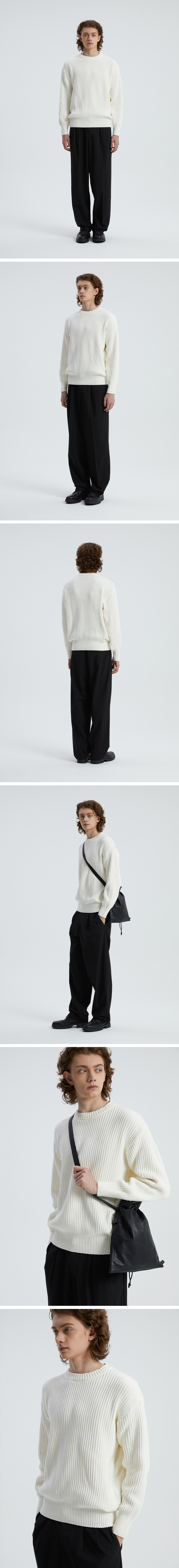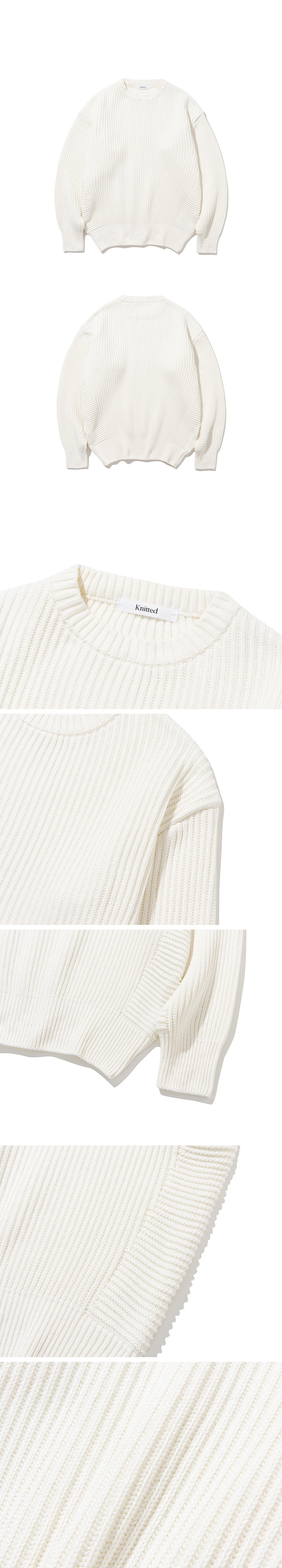 니티드 코튼 미니멀 라운드 니트 아이보
