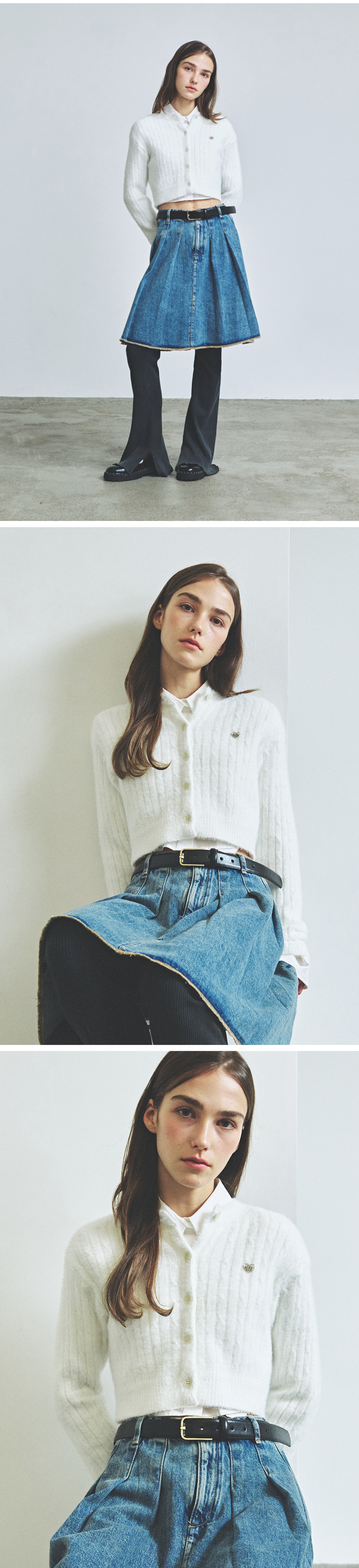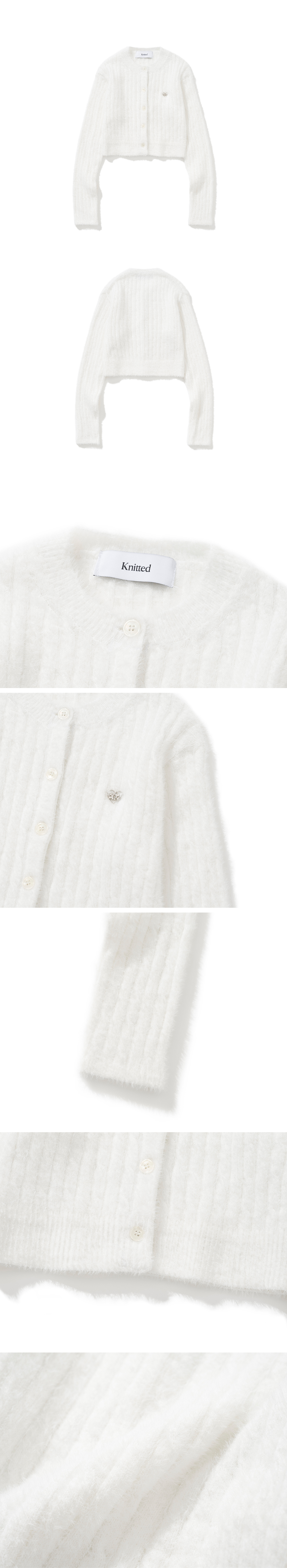 니티드 헤어리 퍼 케이블 크롭 가디건 우먼 아이보리