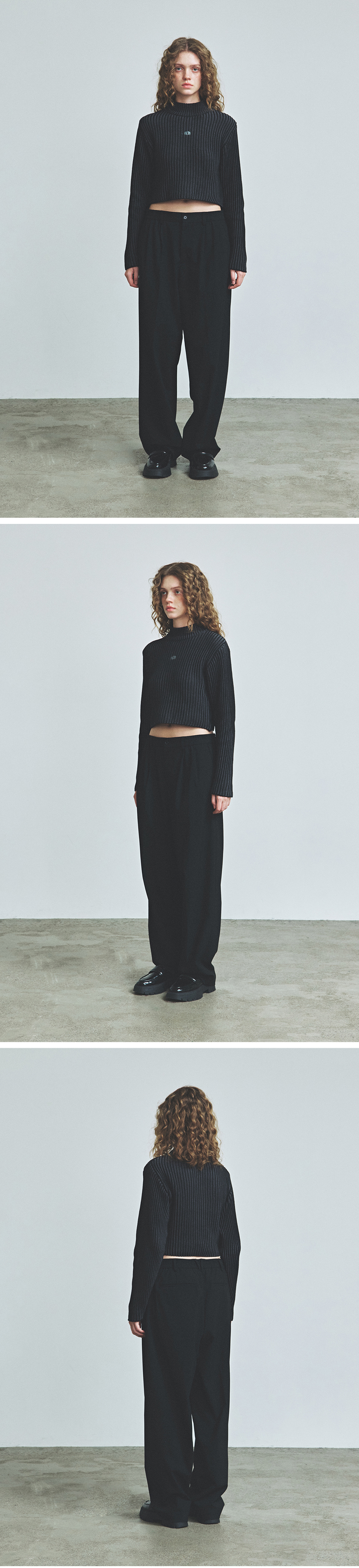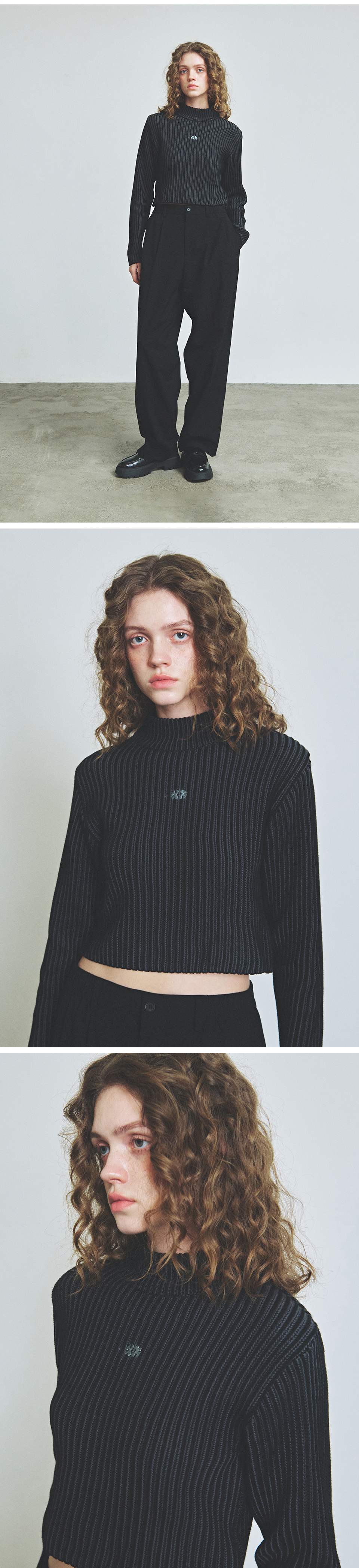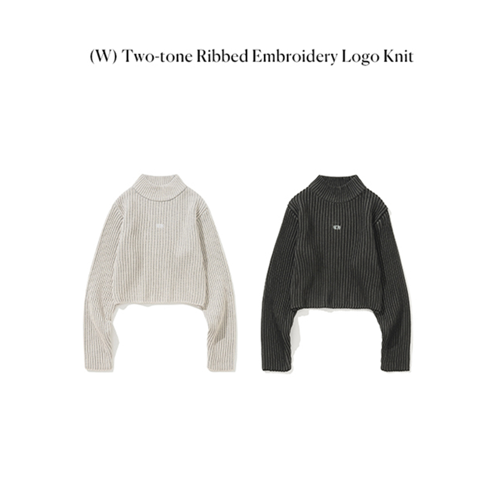 니티드 투톤 골지 자수 로고 니트 우먼 블랙