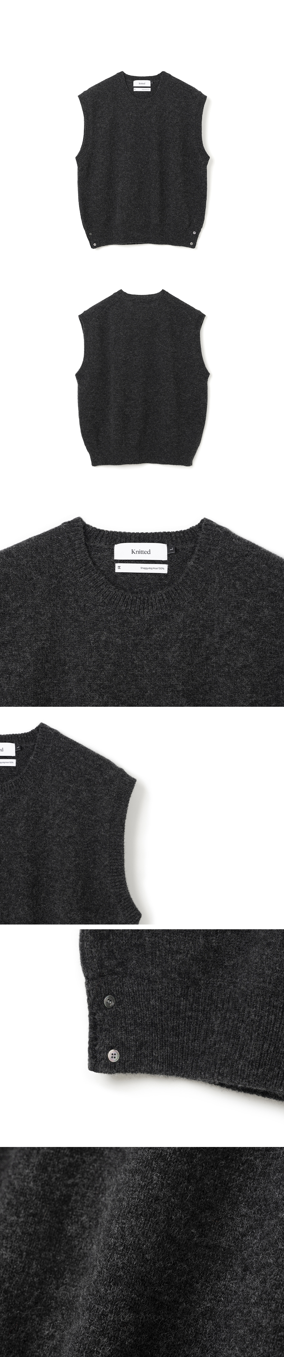 Knitted Shaggy Dog Wool 100% Round Vest Charcoal