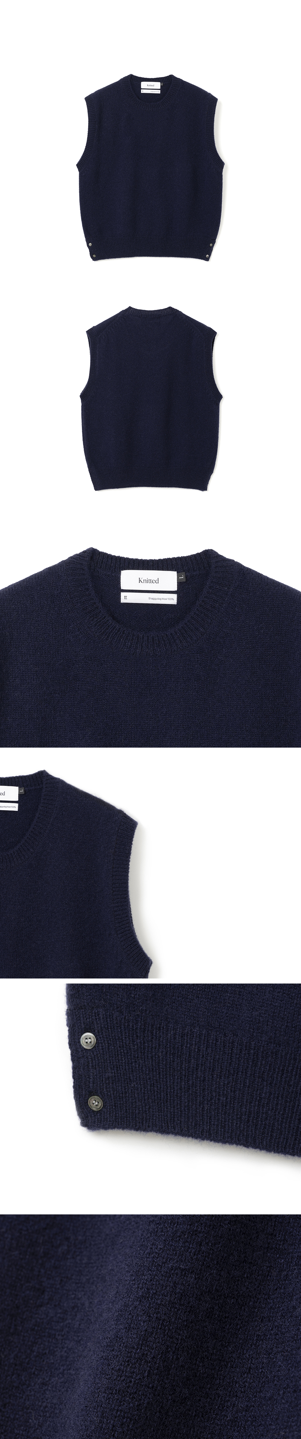 Knitted Shaggy Dog Wool 100% Round Vest Navy
