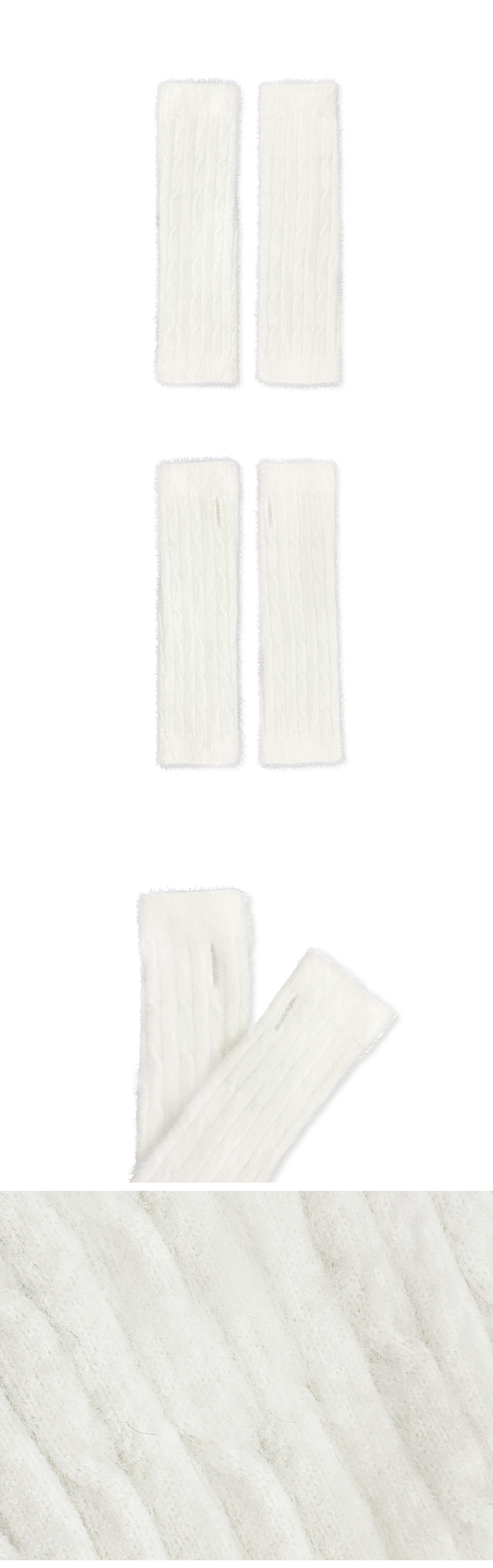 니티드 헤어리 퍼 케이블 핸드워머 아이보리