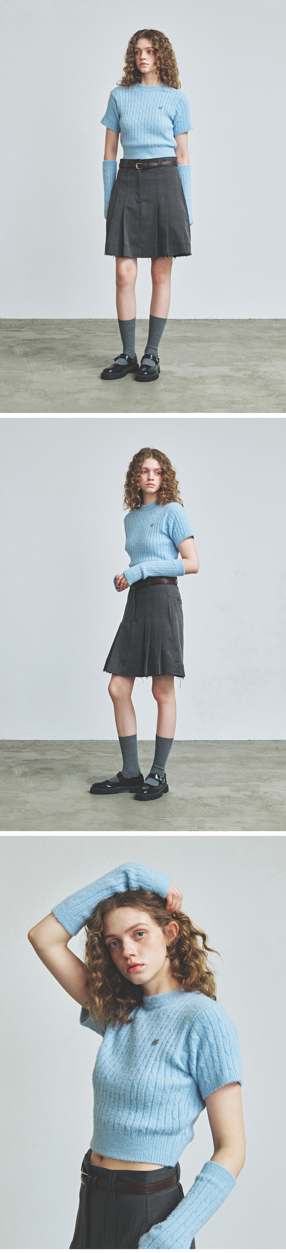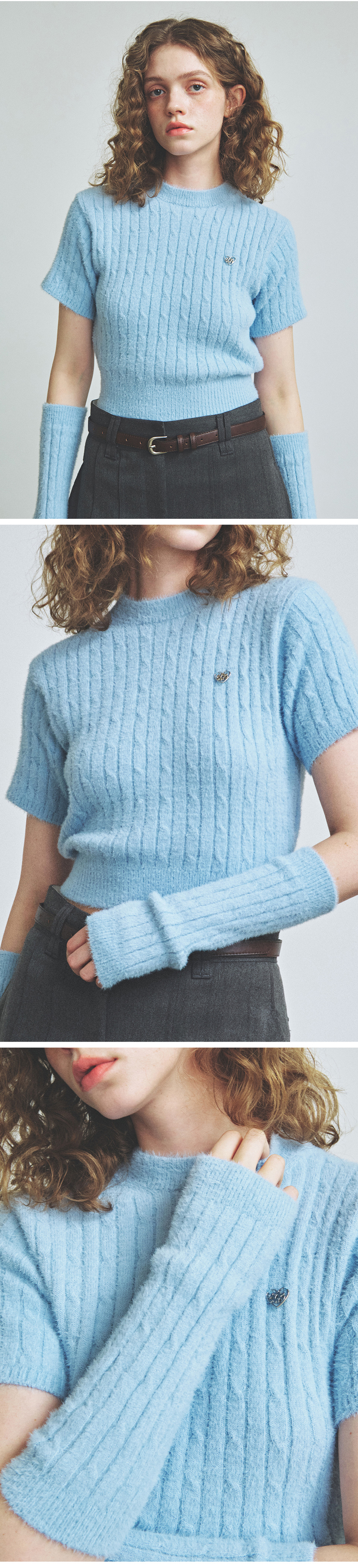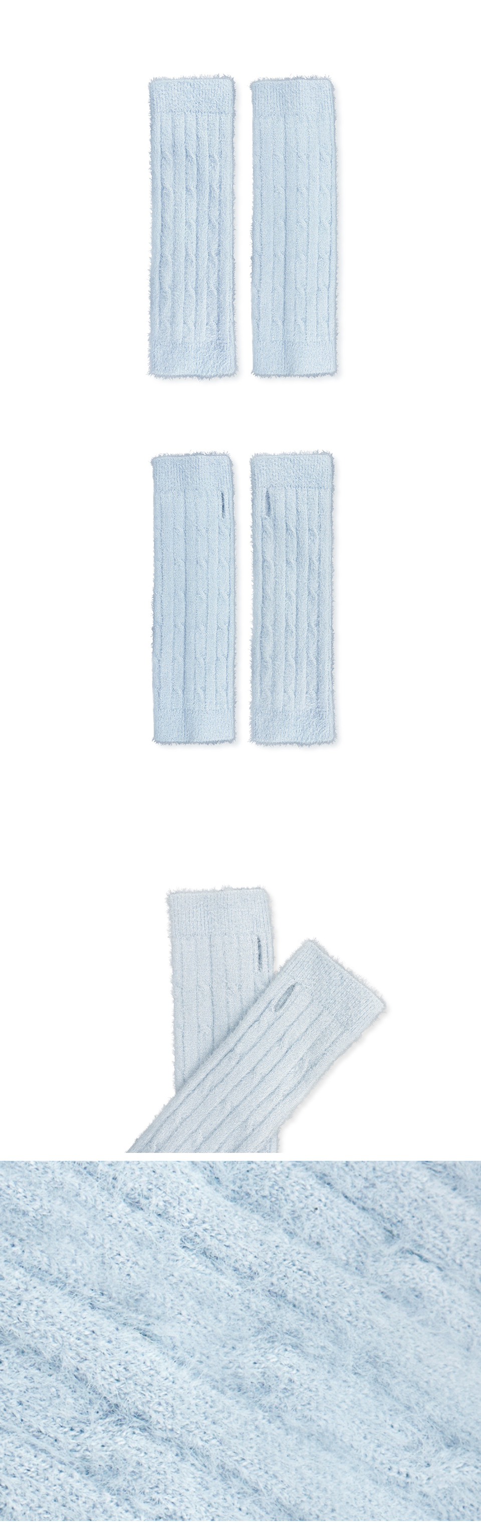 니티드 헤어리 퍼 케이블 핸드워머 스카이