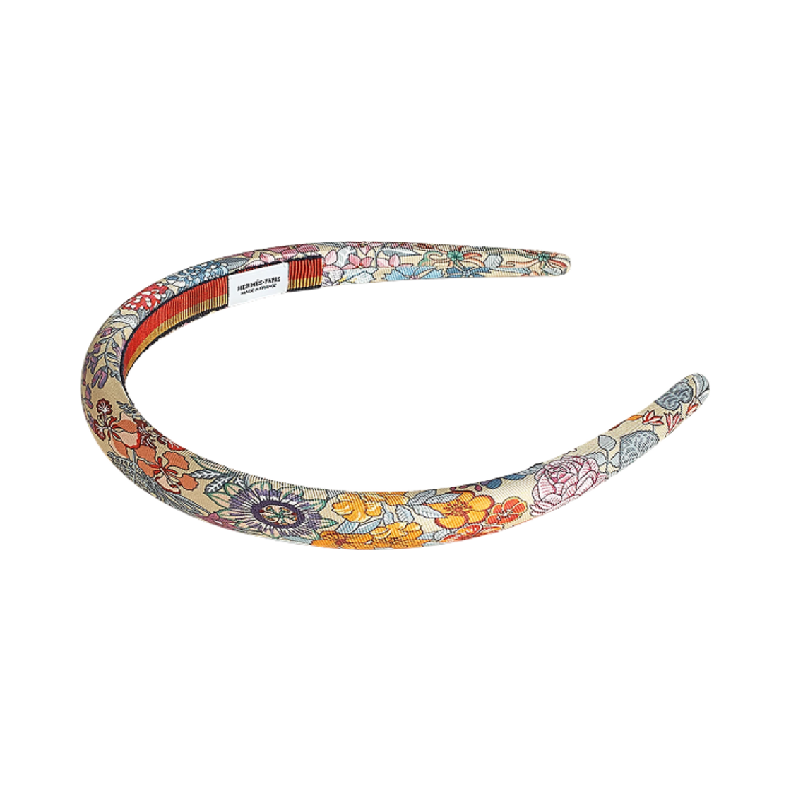 (W) Hermes Elsa Bloom Headband Silk & Beige