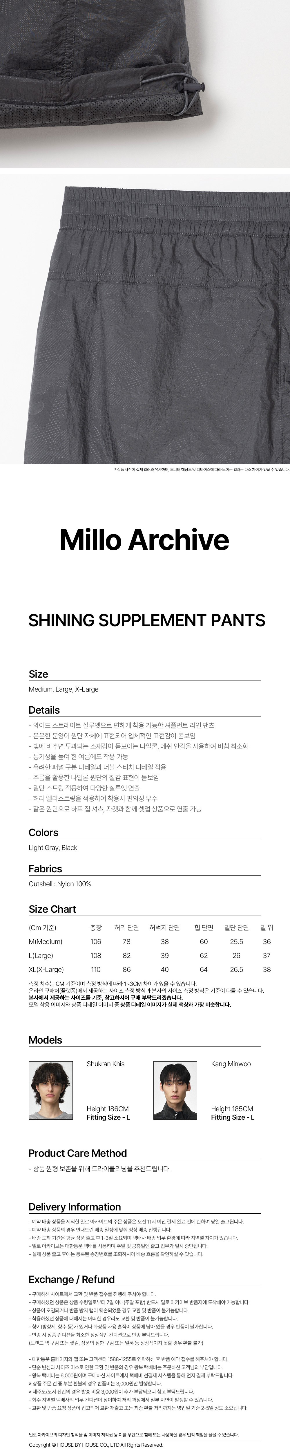 밀로 아카이브 샤이닝 서플먼트 라인 팬츠 블랙