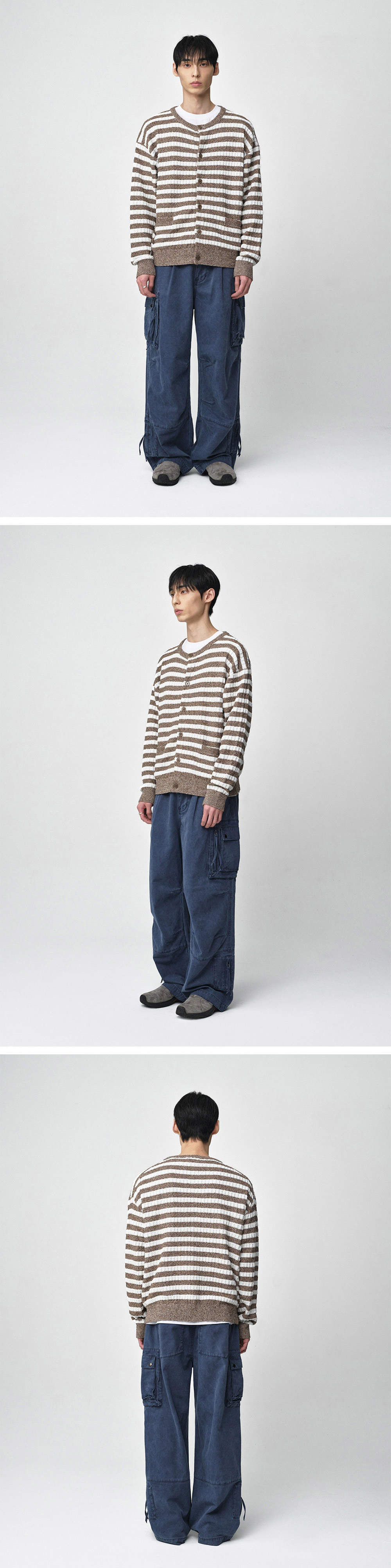 - 브랜드 시그니처 아이템의 새로운 버전의 시스템 라인 가디건 - 투톤 컬러를 갖춘 부클사 원단에 메탈사를 섞은 포인트 가디건 - 코튼 나일론 혼방 원사로 적당한 무게감과 실루엣 무드 연출 - 트렌드에 부합하는 라운드 넥 가디건 - 스트라이프 짜임의 완성도가 돋보이며 전면부 포켓 디테일 적용 - 3개 사이즈로 전개하여 선택의 폭을 넓힘