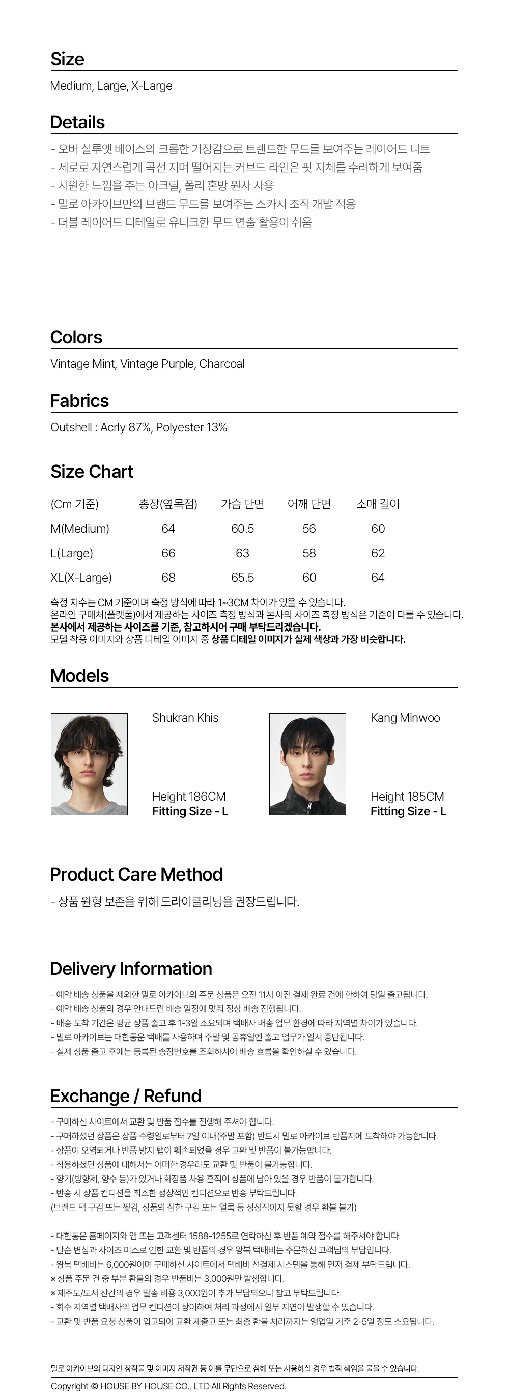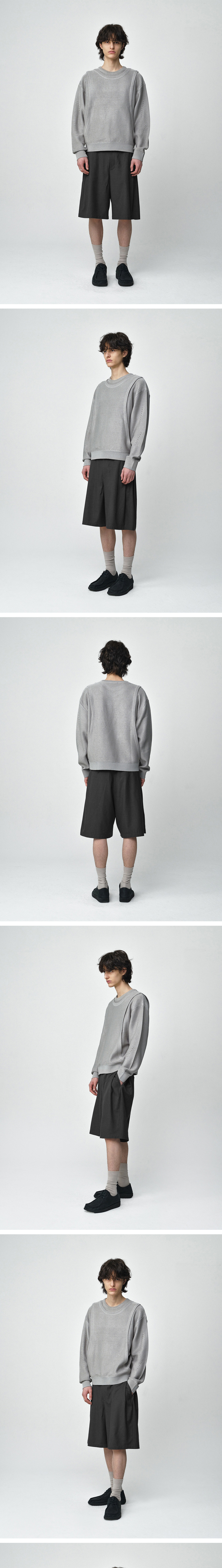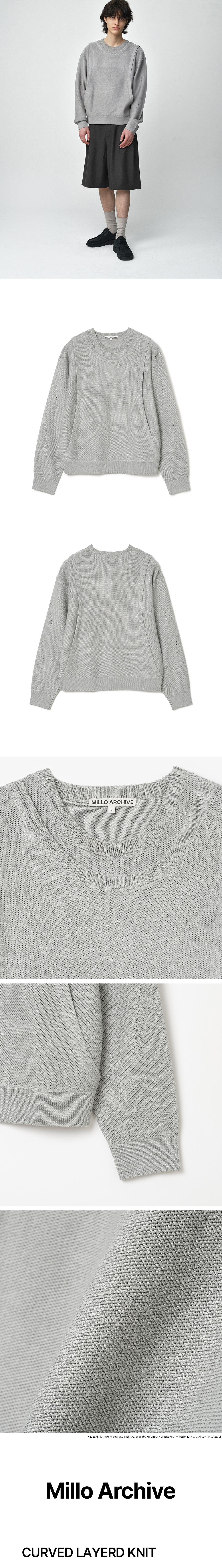 - 오버 실루엣 베이스의 크롭한 기장감으로 트렌드한 무드를 보여주는 레이어드 니트 - 세로로 자연스럽게 곡선 지며 떨어지는 커브드 라인은 핏 자체를 수려하게 보여줌 - 시원한 느낌을 주는 아크릴, 폴리 혼방 원사 사용 - 밀로 아카이브만의 브랜드 무드를 보여주는 스카시 조직 개발 적용 - 더블 레이어드 디테일로 유니크한 무드 연출 활용이 쉬움