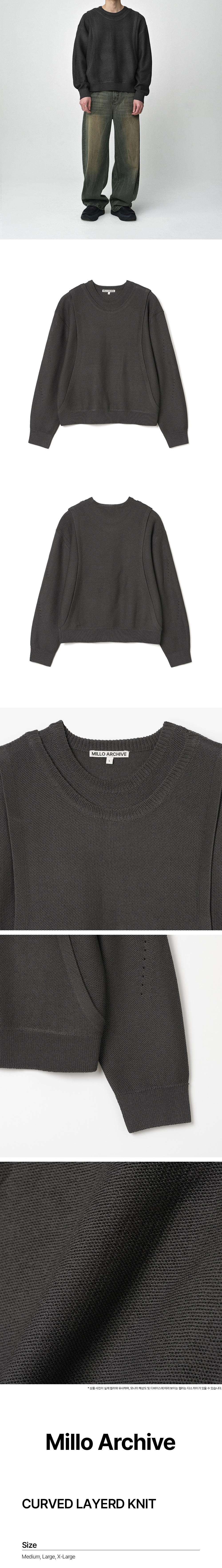 밀로 아카이브 커브드 레이어드 니트 차콜