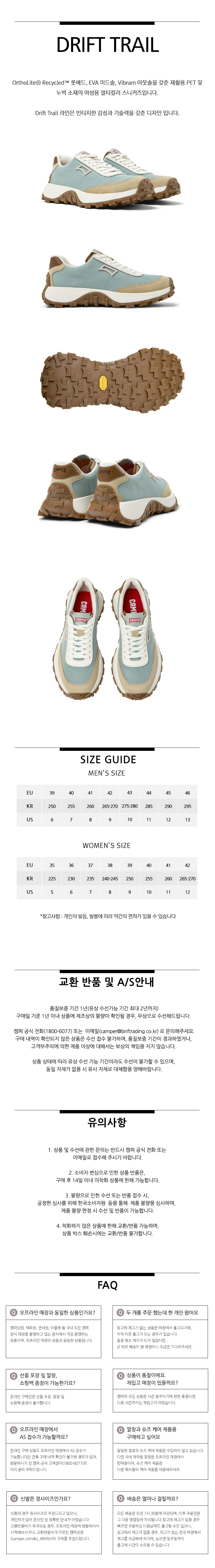 캠퍼 여성 드리프트 트레일 스니커즈 민트