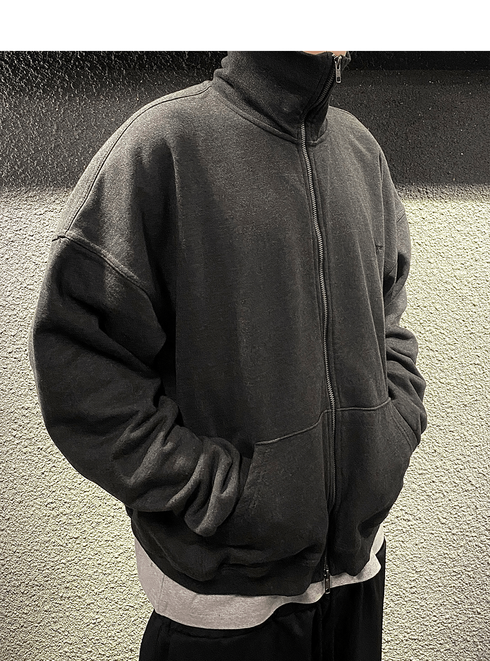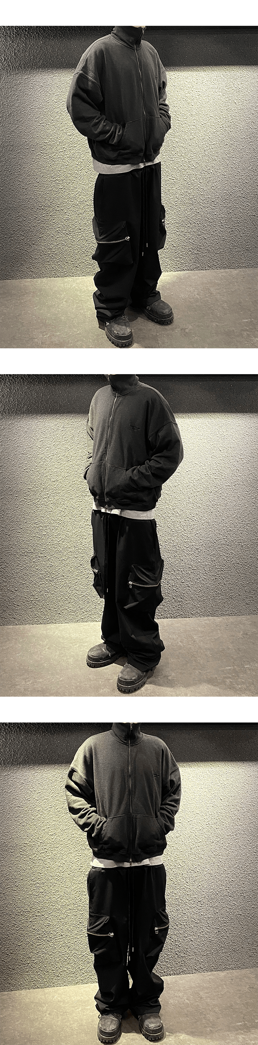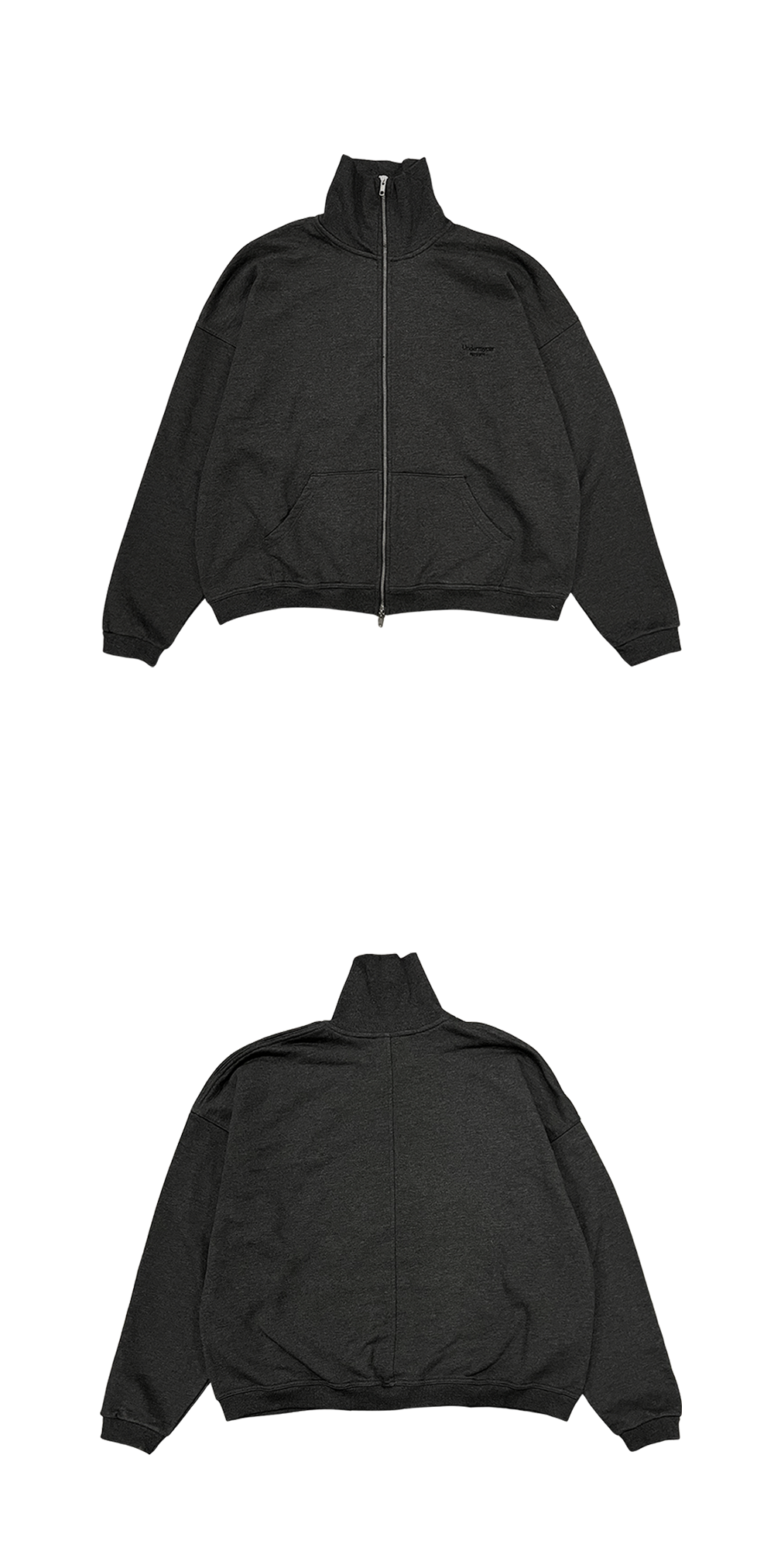Undermycar Mu.95 Anti Fxxking Logo Play High Neck Cotton Zip-up Charcoal