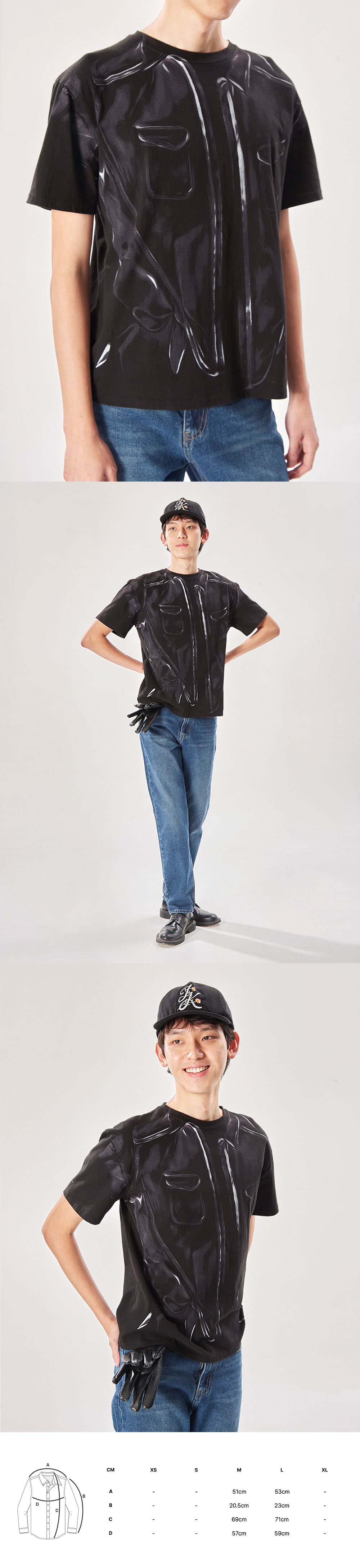 UNTAE KIM SS24 PAINTED PETAL SHIRTS의 포켓 디테일과 코르셋 라인, 페탈 디테일을 트롱쁘뢰유 기법으로 재해석한 티셔츠입니다.
