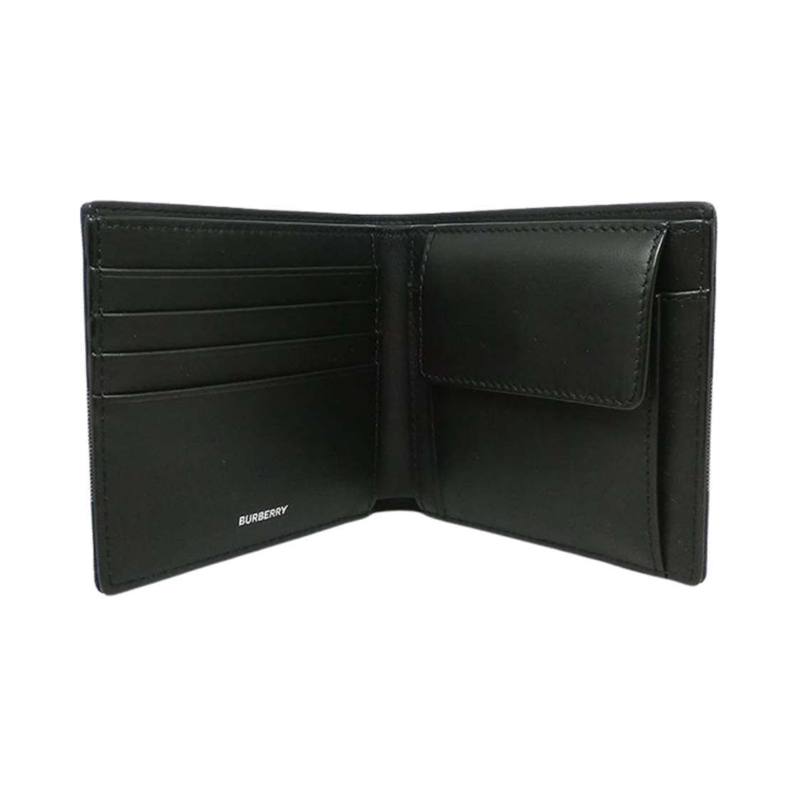 Burberry Bill Vintage Check Leather Coin Bifold Wallet Navy Grey
