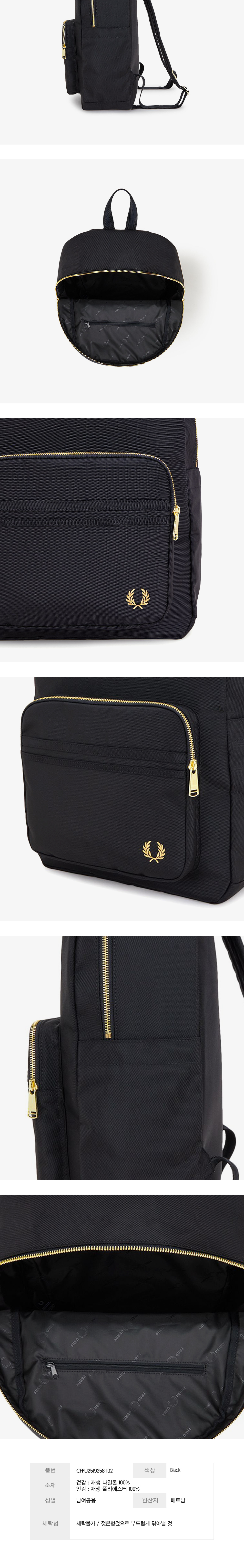 프레드페리 텍스쳐드 나일론 백팩 블랙