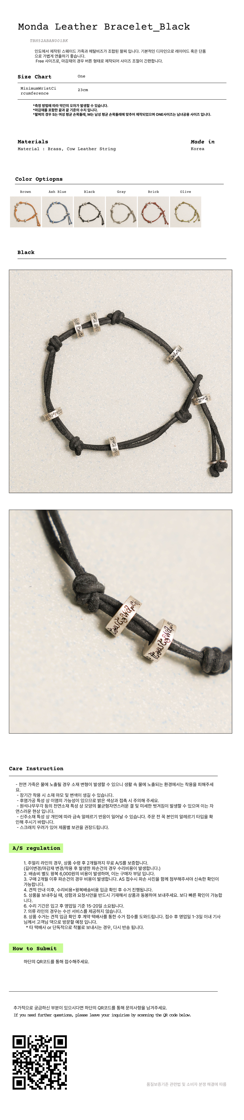토우토우아카이브 몬다 레더 팔찌 블랙