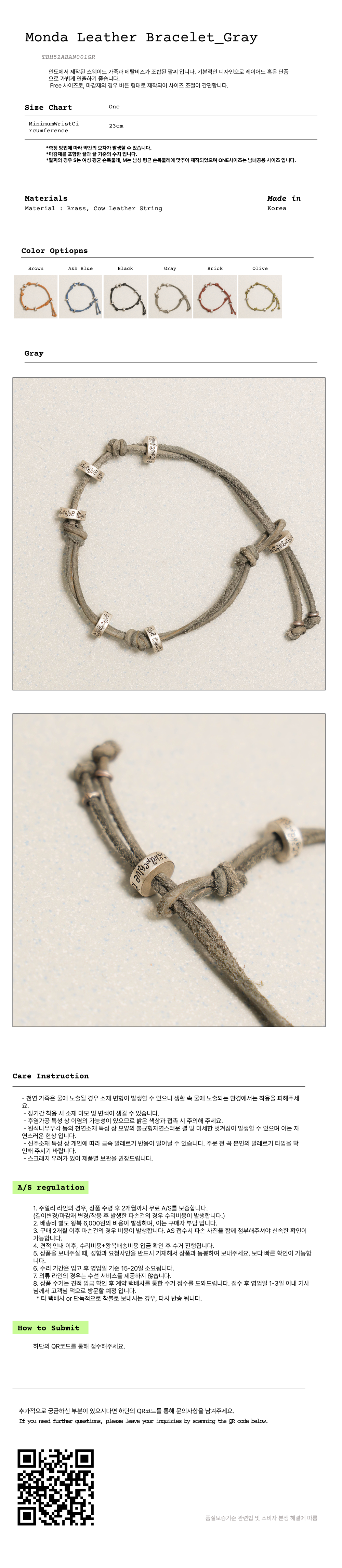 토우토우아카이브 몬다 레더 팔찌 그레이