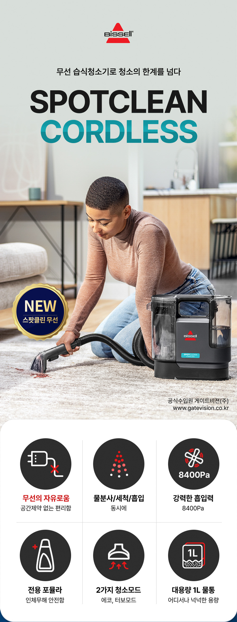 비쎌 스팟클린 코드리스 3681S 무선 습식청소기 매트리스 침구 카페트 청소기