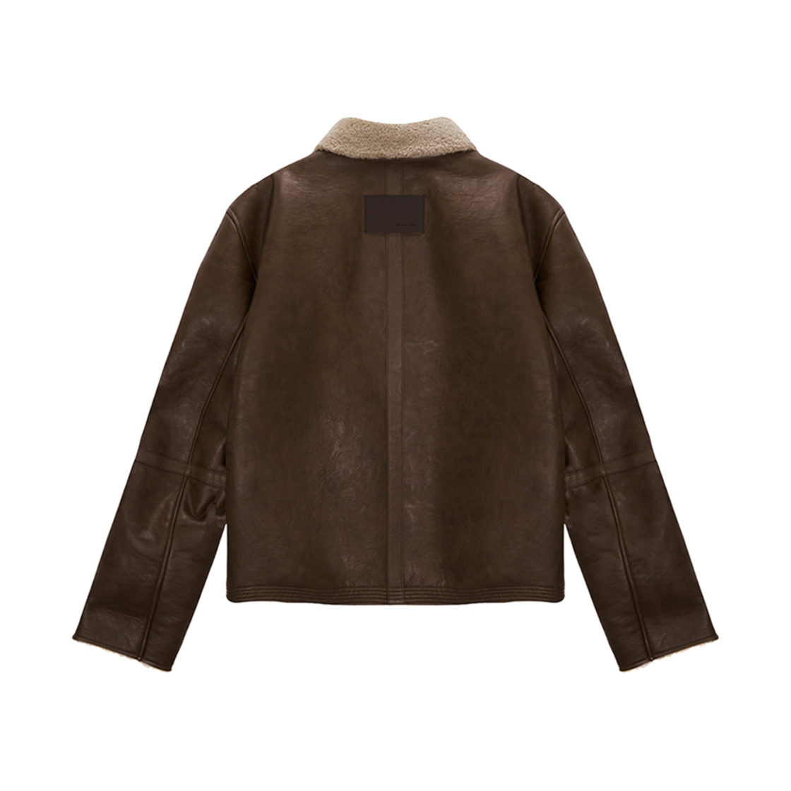 마뗑킴 퍼 포인트 레더 무스탕 점퍼 브라운