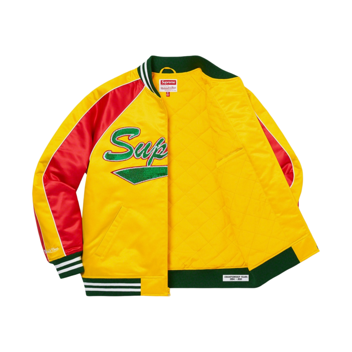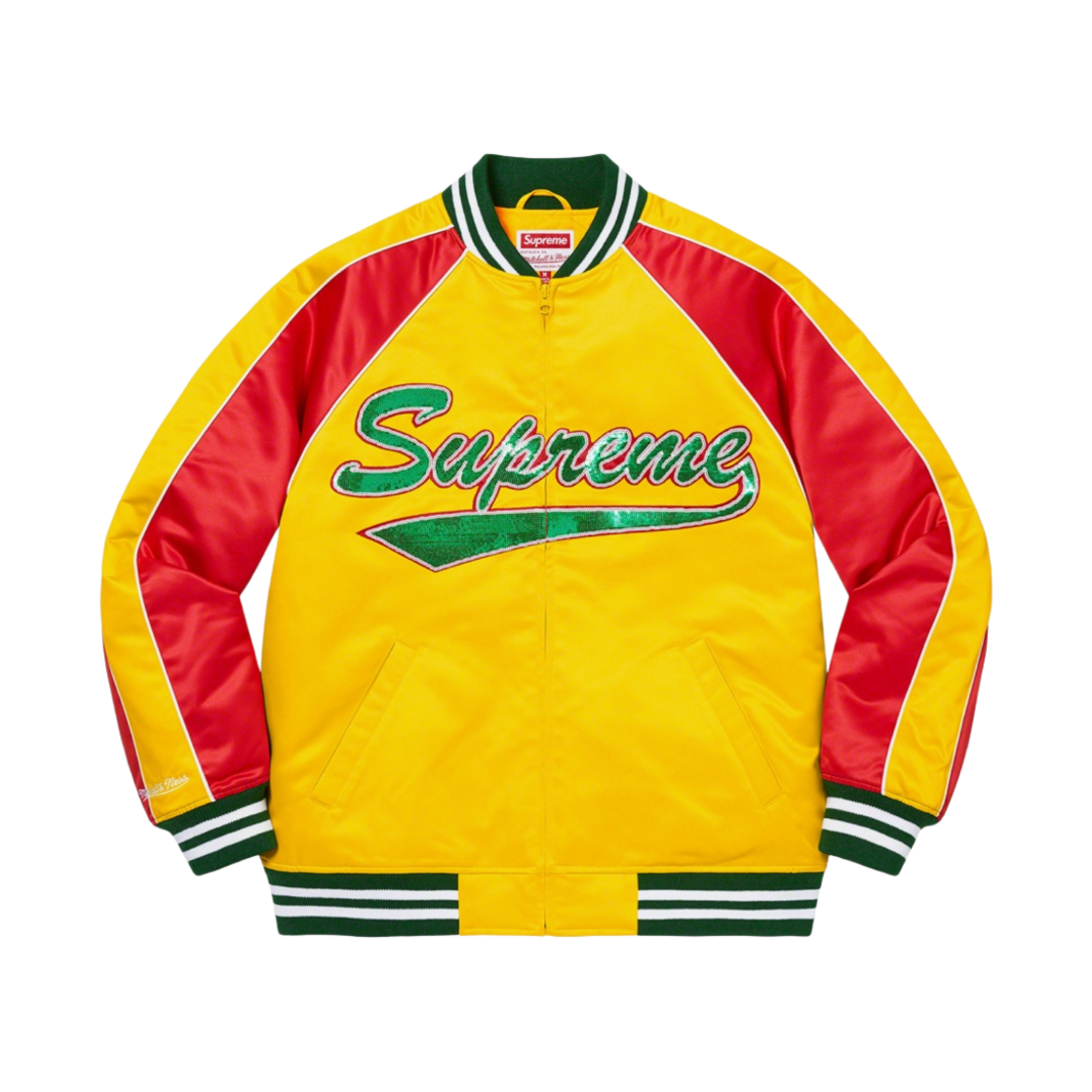 슈프림 미첼 & 네스 시퀸 로고 바시티 자켓 골드 - 21FW