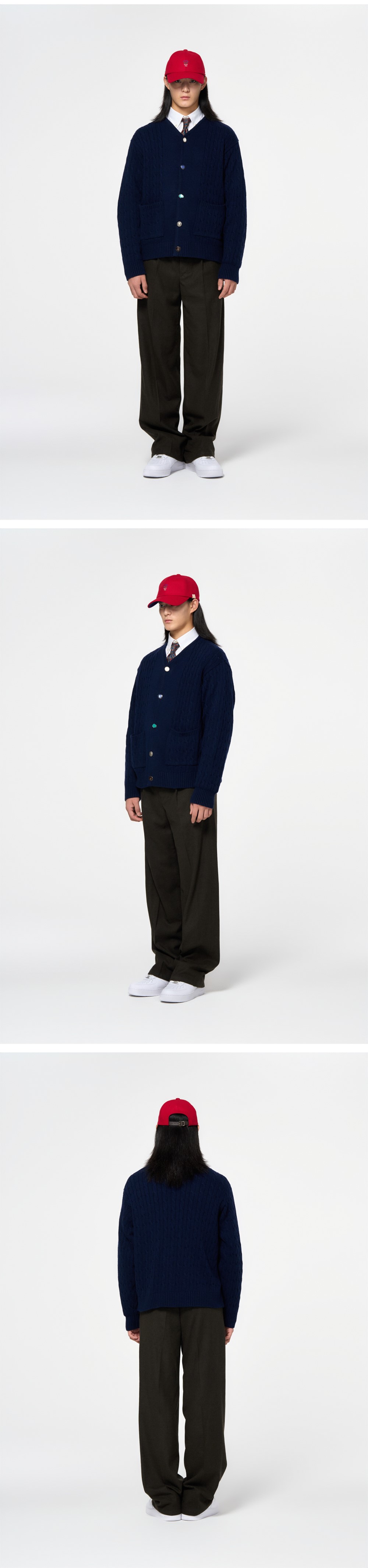홍우성 원턱 와이드 플랫 트라우저 카키