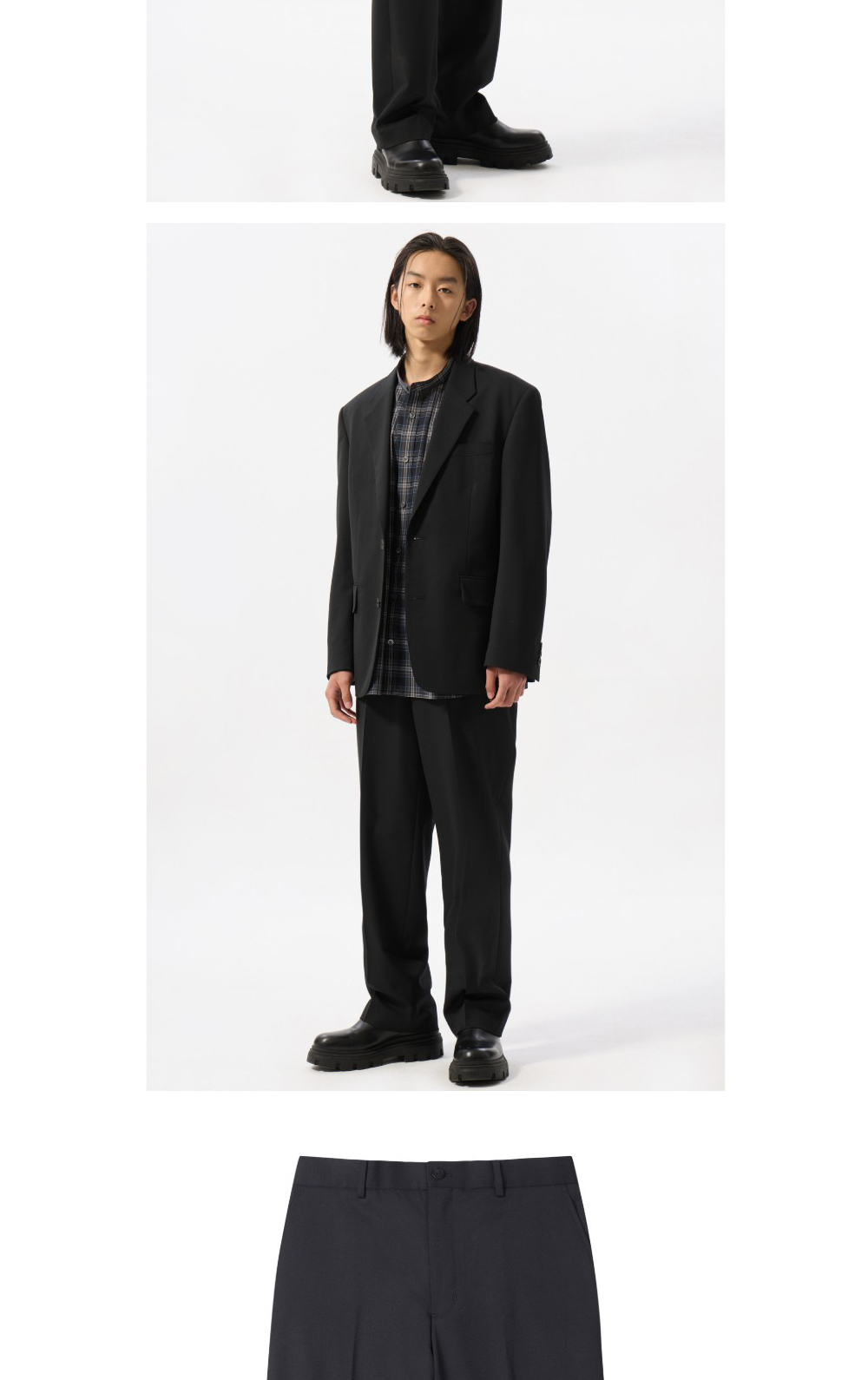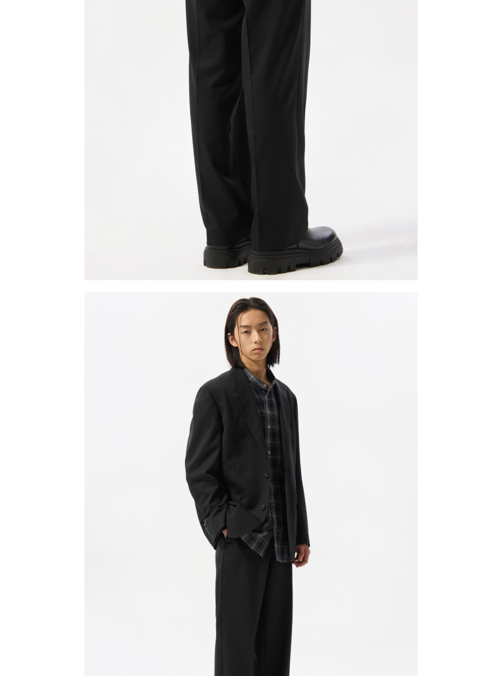 커스텀멜로우 릴렉스 핏 울 블렌드 셋업 팬츠 블랙