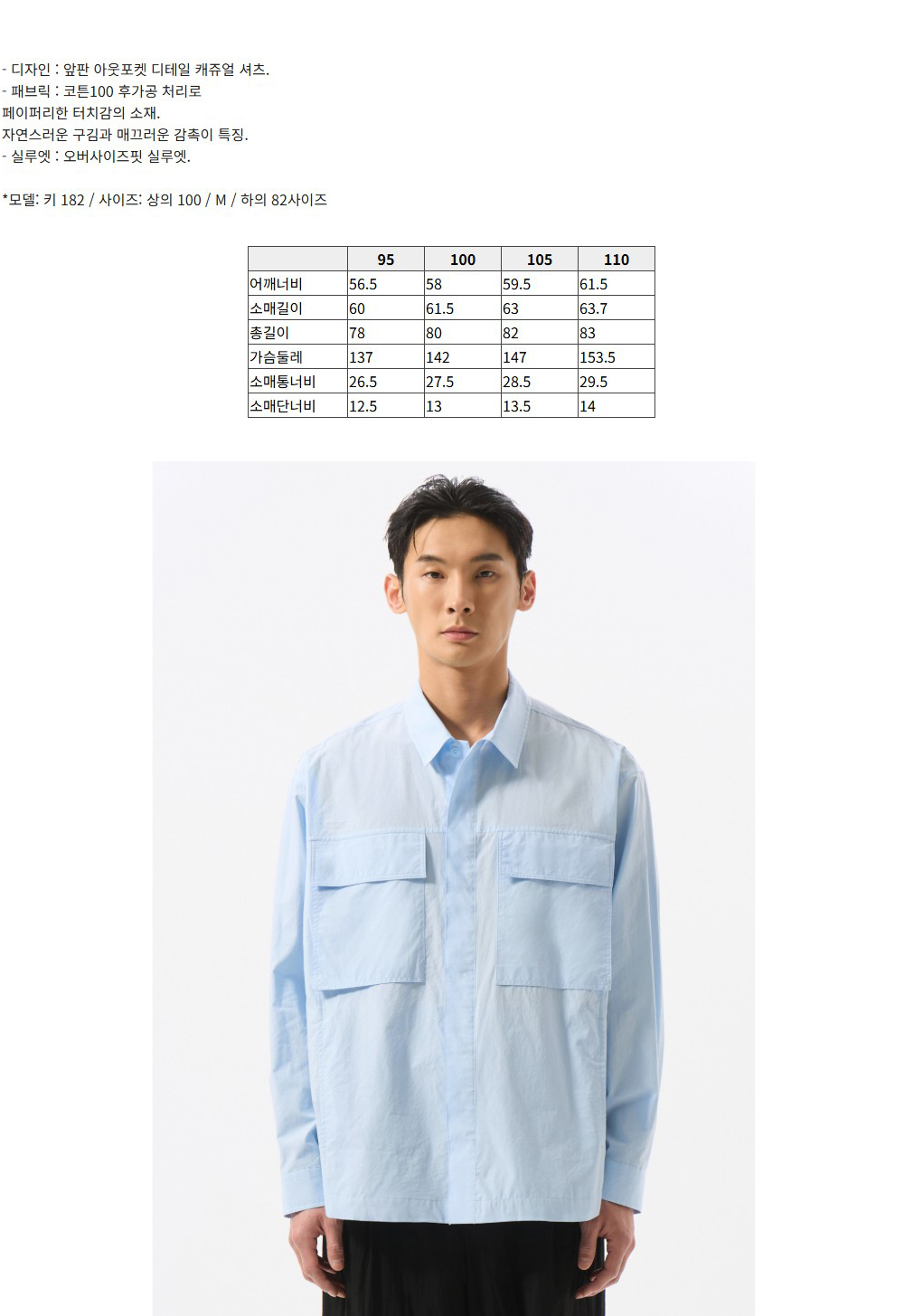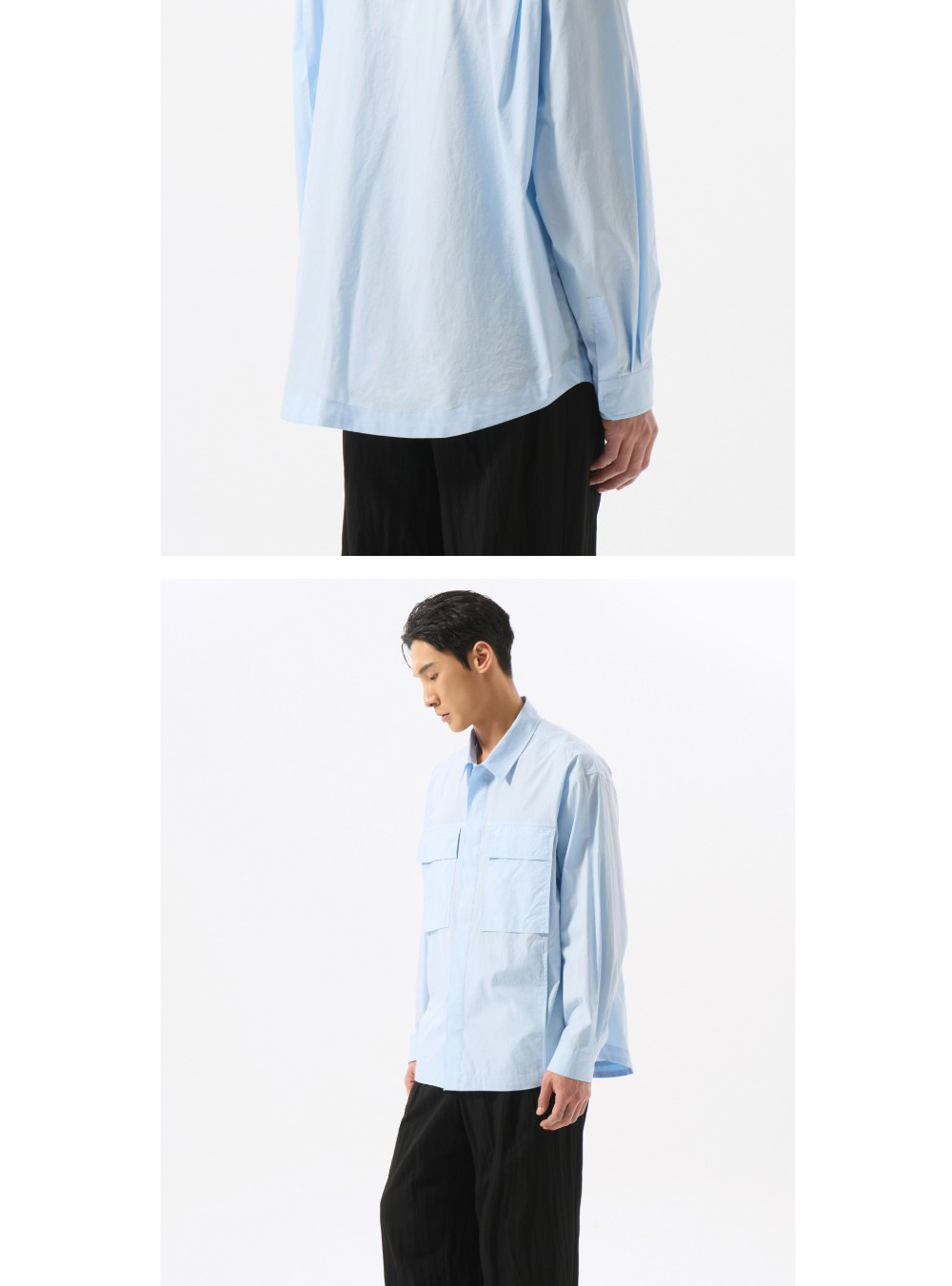 커스텀멜로우 멀티 포켓 오버사이즈 셔츠 블루
