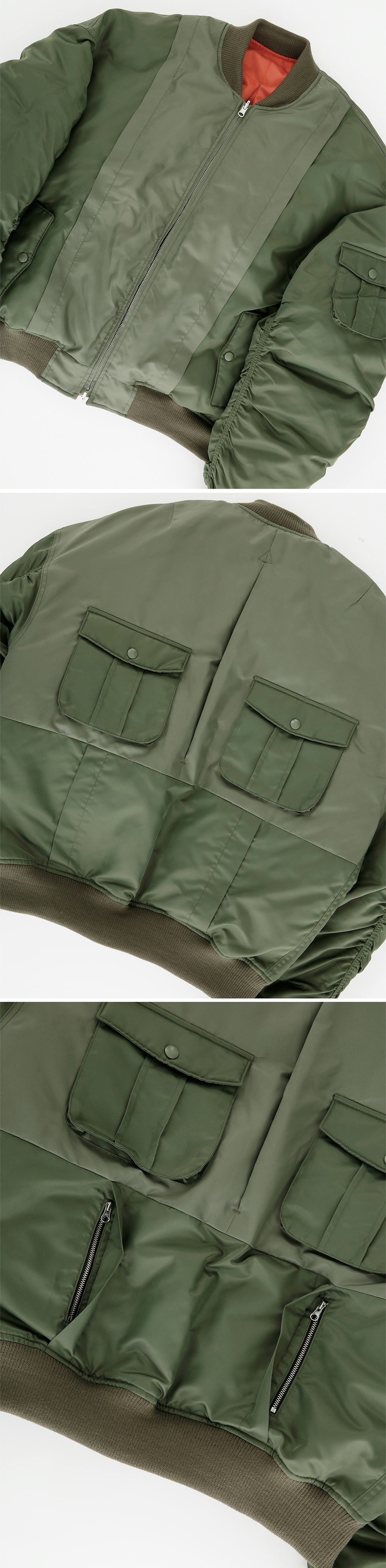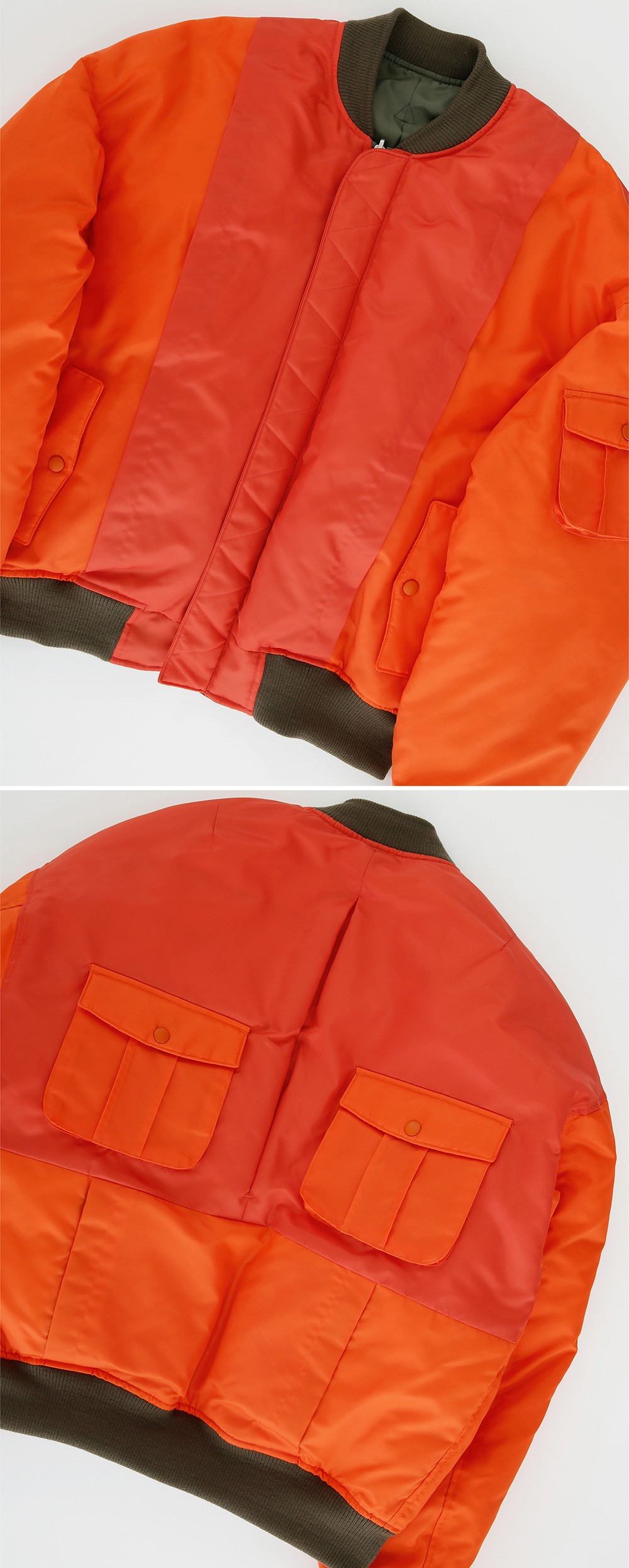 홍우성 리버시블 엠에이1 다운 봄버 카키&오렌지
