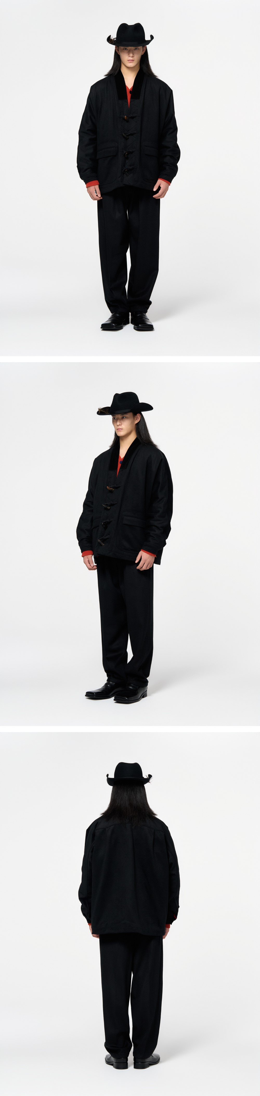 홍우성 오버사이즈 울 유카타 패딩 블랙