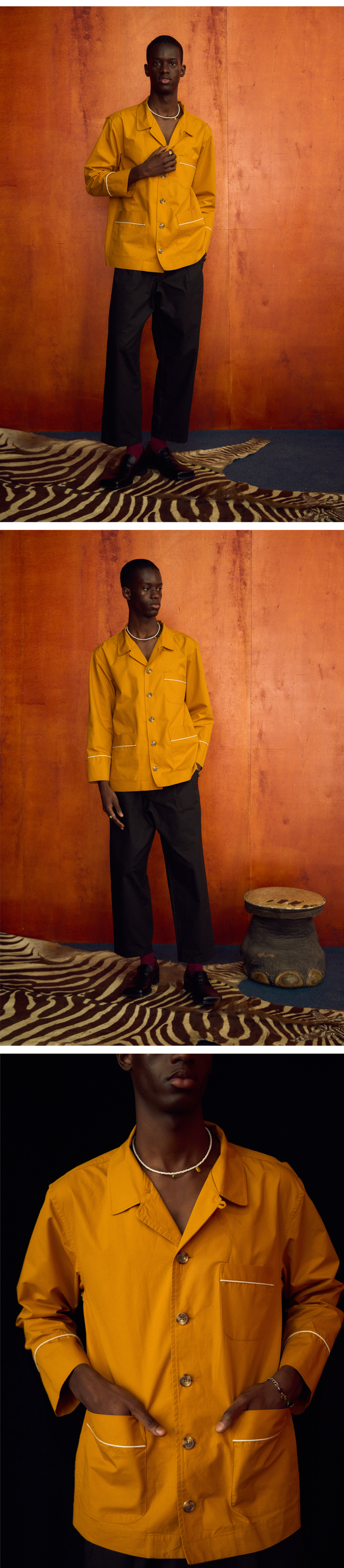 홍우성 패턴 아웃사이드 파자마 머스타드