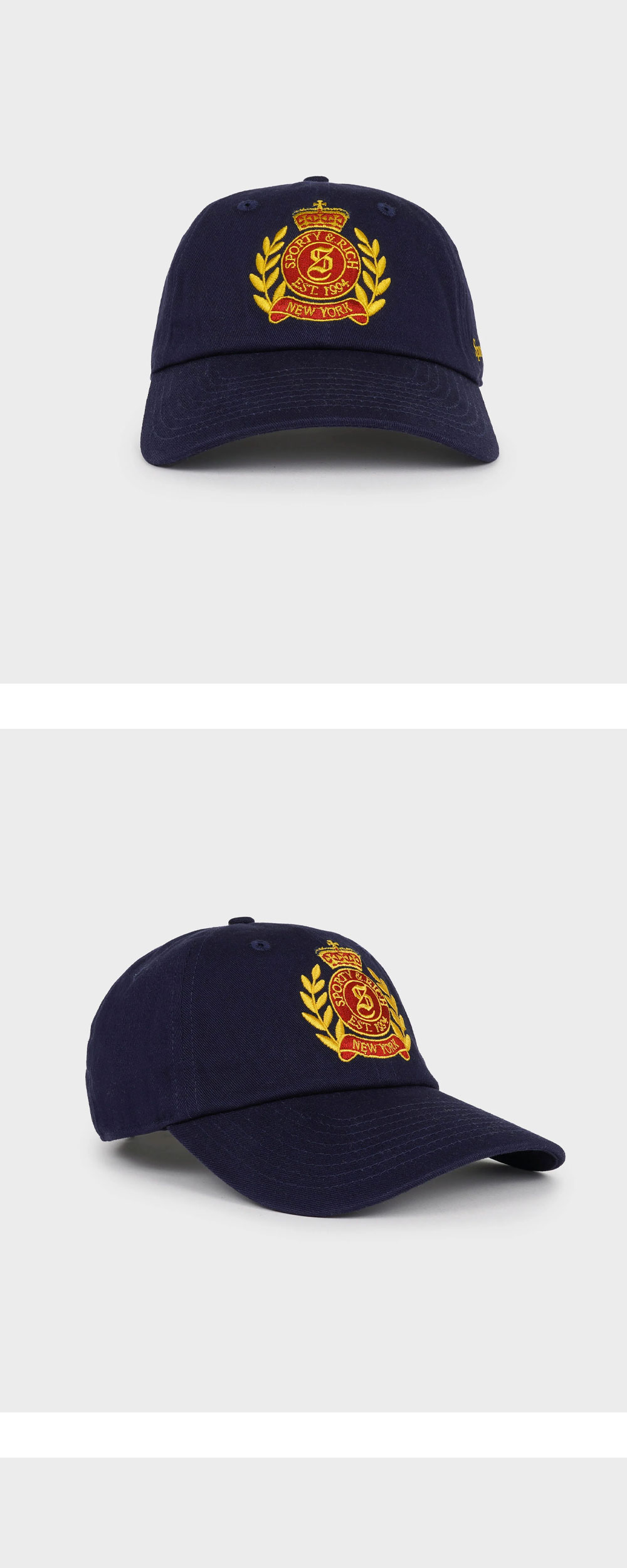 네이비와 옐로우의 조화가 매력적인 스포티 앤 리치의 NY 크레스트 햇 네이비입니다. - 면 트윌 100 - 사이즈 조절 가능 - 6패널