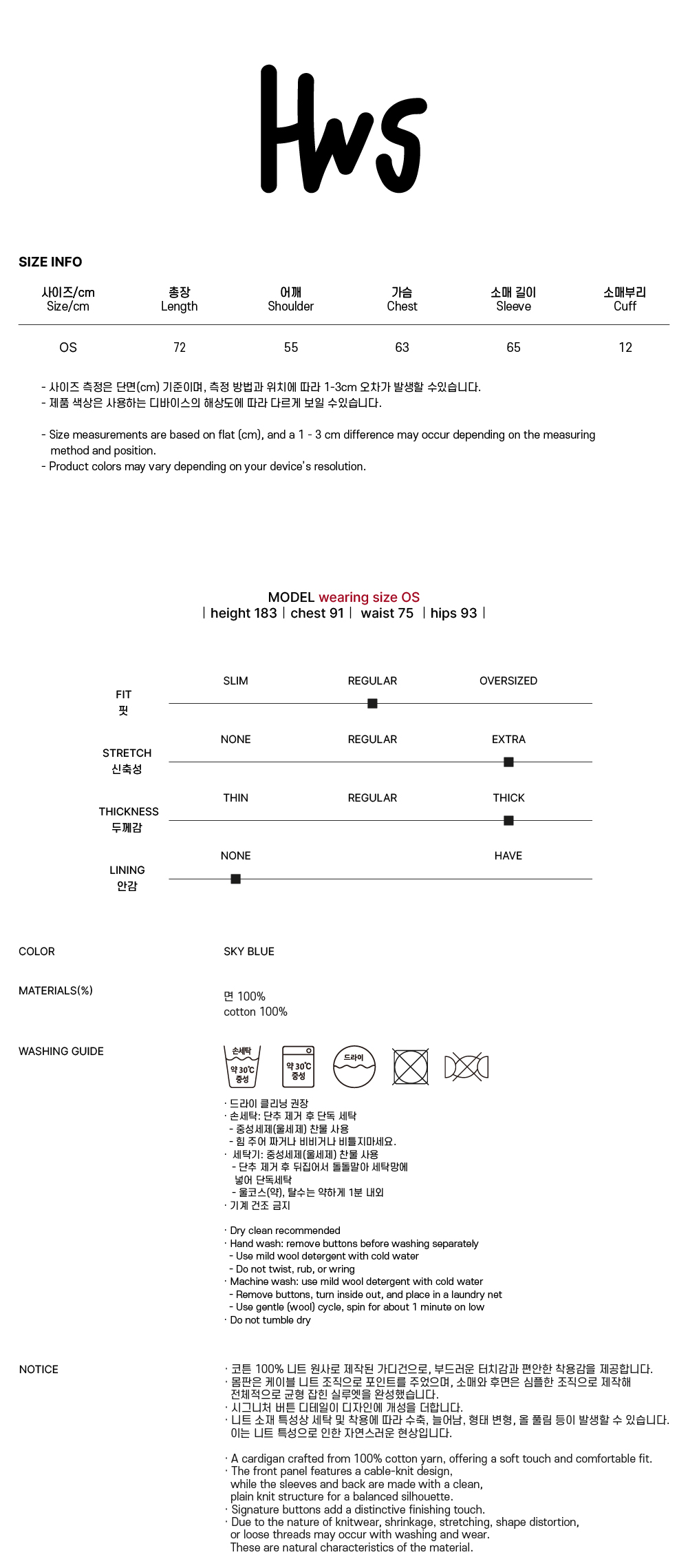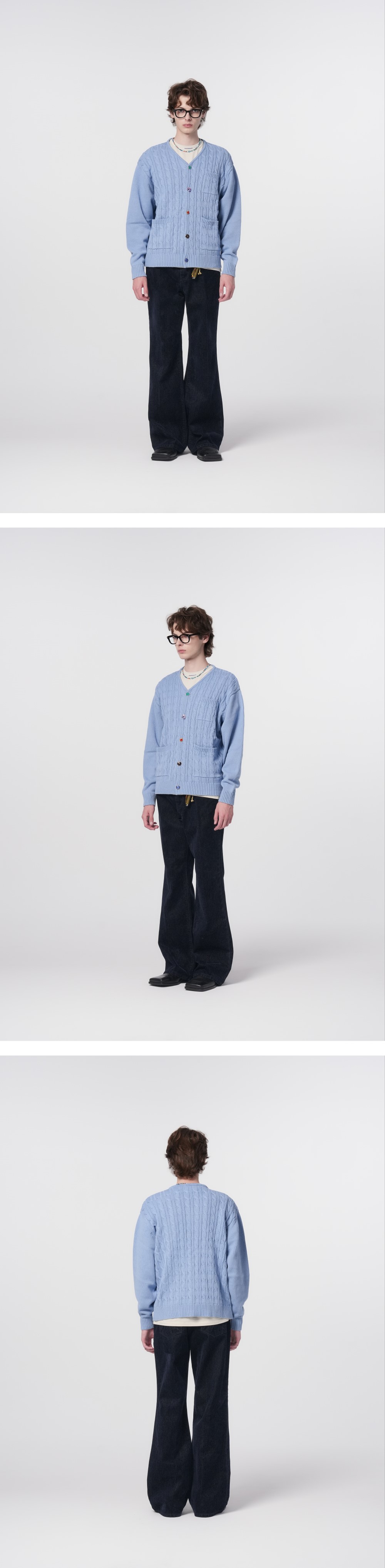 홍우성 루즈핏 주얼리 버튼 가디건 스카이블루