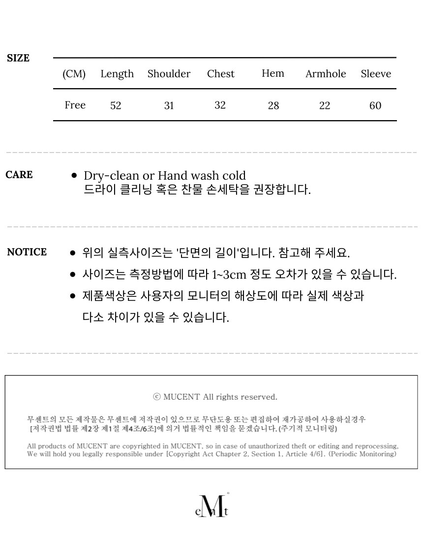 ┃Detail • 전면부 무센트 시그니처 로고 자수 • 라운드넥 디자인 • 적당한 두께감의 골지 니트 • 우수한 신축성과 편안한 착용감 • 부담스럽지 않은 세미 크롭 기장 • 슬림한 아웃핏 연출 • 다양한 하의와 매치 가능한 데일리 아이템 ┃Material : Polyester 100% ┃Care : Dry cleaning - 무센트는 말기의 행성인 이 지구에서 지속 가능한 옷들을 고민합니다. 우리는 신념을 소비하는 미닝아웃을 지지합니다.