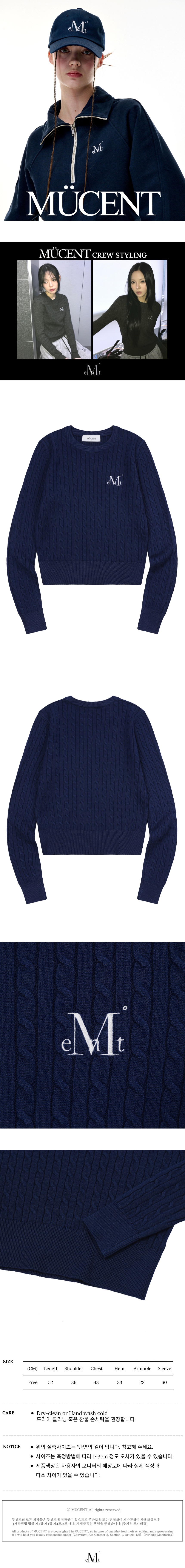 ┃Detail • 전면부 무센트 시그니처 로고 자수 • 라운드 넥 디자인 • 케이블 패턴 디테일 • 우수한 신축성과 편안한 착용감 • 부담스럽지 않은 세미 크롭 기장 • 슬림한 아웃핏 연출 • 다양한 하의와 매치 가능한 데일리 아이템 ┃Material : Polyester 100% ┃Care : Dry cleaning - 무센트는 말기의 행성인 이 지구에서 지속 가능한 옷들을 고민합니다. 우리는 신념을 소비하는 미닝아웃을 지지합니다.