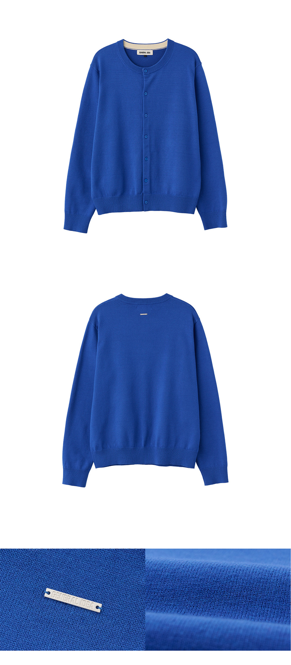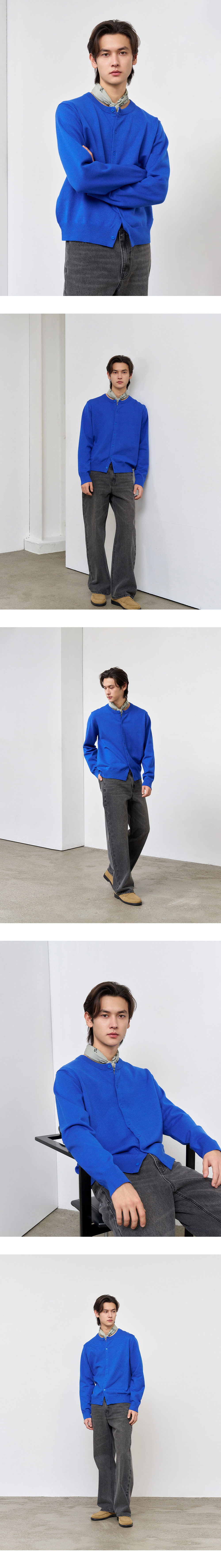제너럴아이디어 맨 에센셜 미니멀 크루넥 가디건 블루