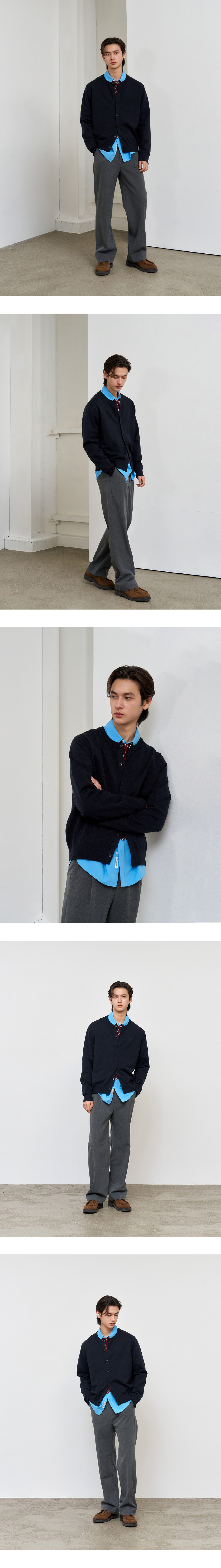 제너럴아이디어 맨 에센셜 미니멀 크루넥 가디건 딥 네이비