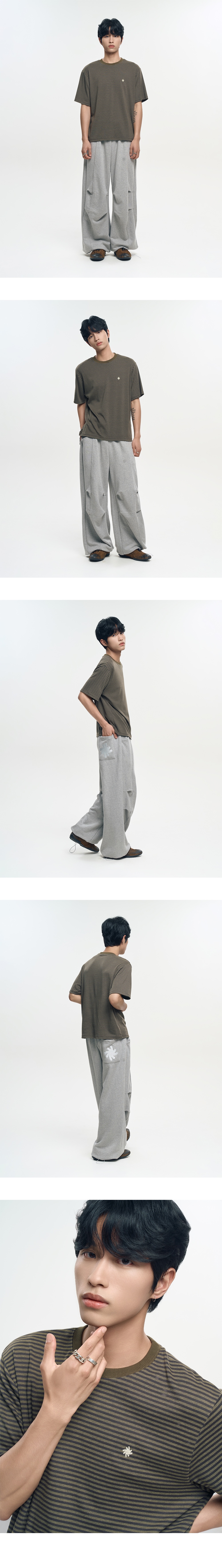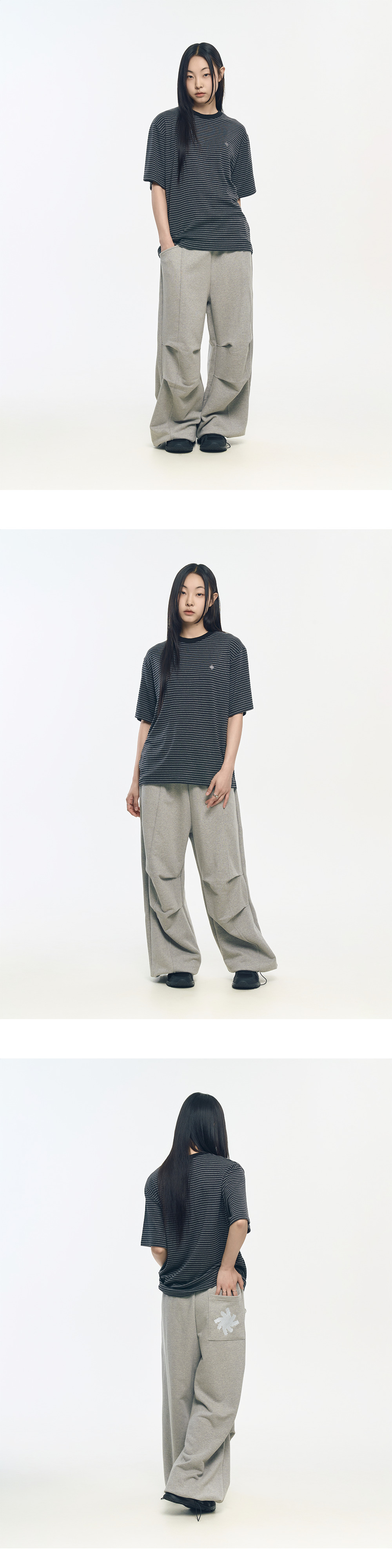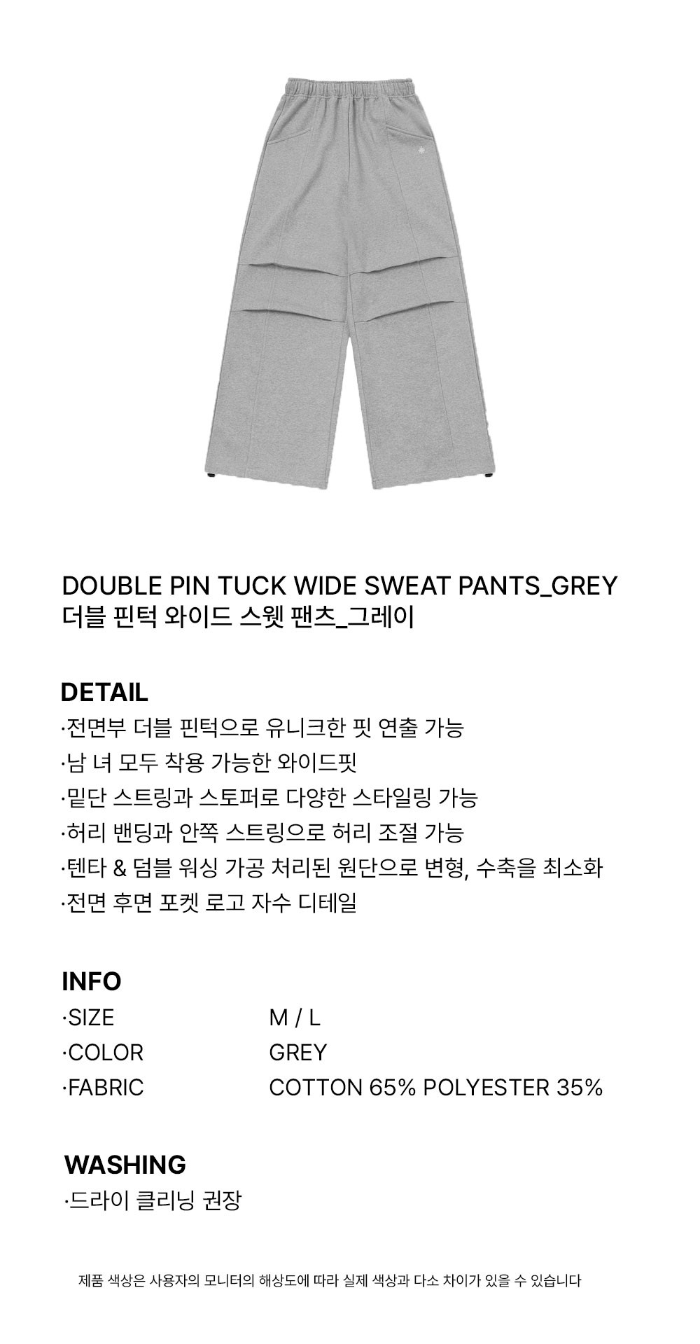 슬로우 레코드 하우스 더블 핀턱 와이드 스웻 팬츠 그레이